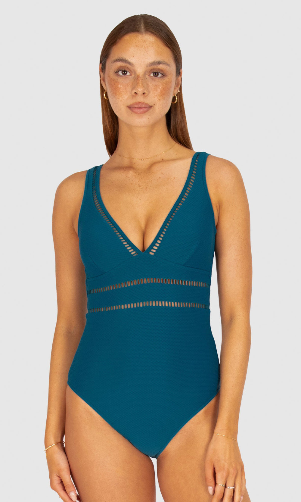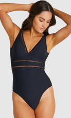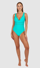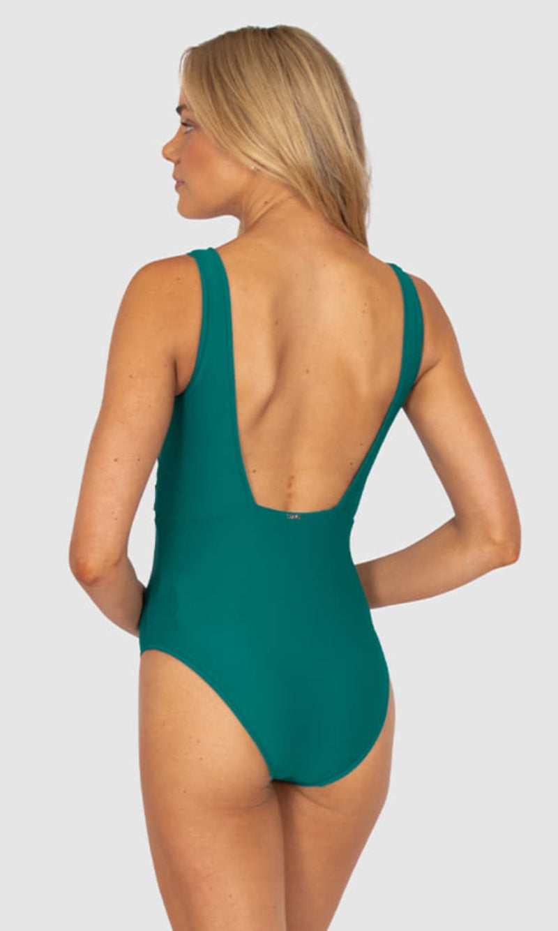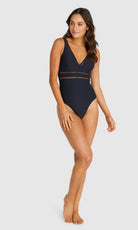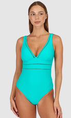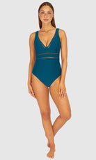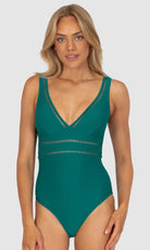 Designed for the modern woman- Rococco is our best-selling solid fabrication that is buttery soft, yet sophisticated and structured. Rococco provides flattering shaping power that ensures confidence and elegance. Baku's Rococco Longline One Piece Swimsuit features a flattering dropped neckline, highlighted with ladder lace detailing. It also features a low back, removable cups and is fully lined.