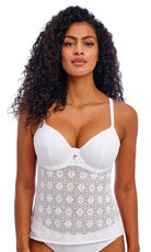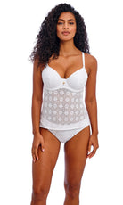Nomad Nights White UW Plunge Tankini Top, Special Order D Cup to HH Cup