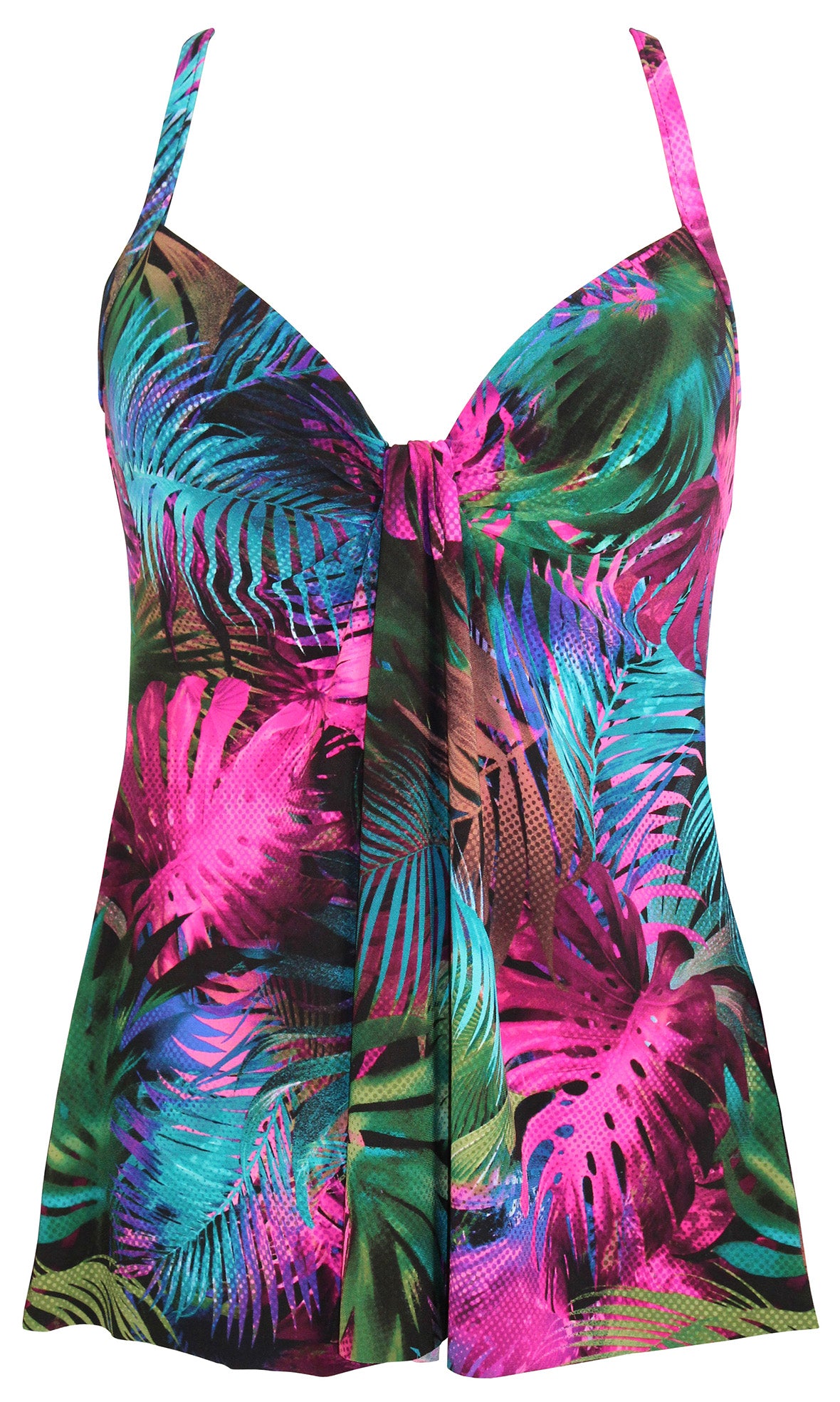 Enhancing your figure in not one, not two but three different ways, this floaty tankini top is designed to instil instant body confidence! Padded, underwired cups lift and shape your bust, unique shirring and wrapping accentuates your cleavage, while the draped front below comfortably conceals any tummy worries.