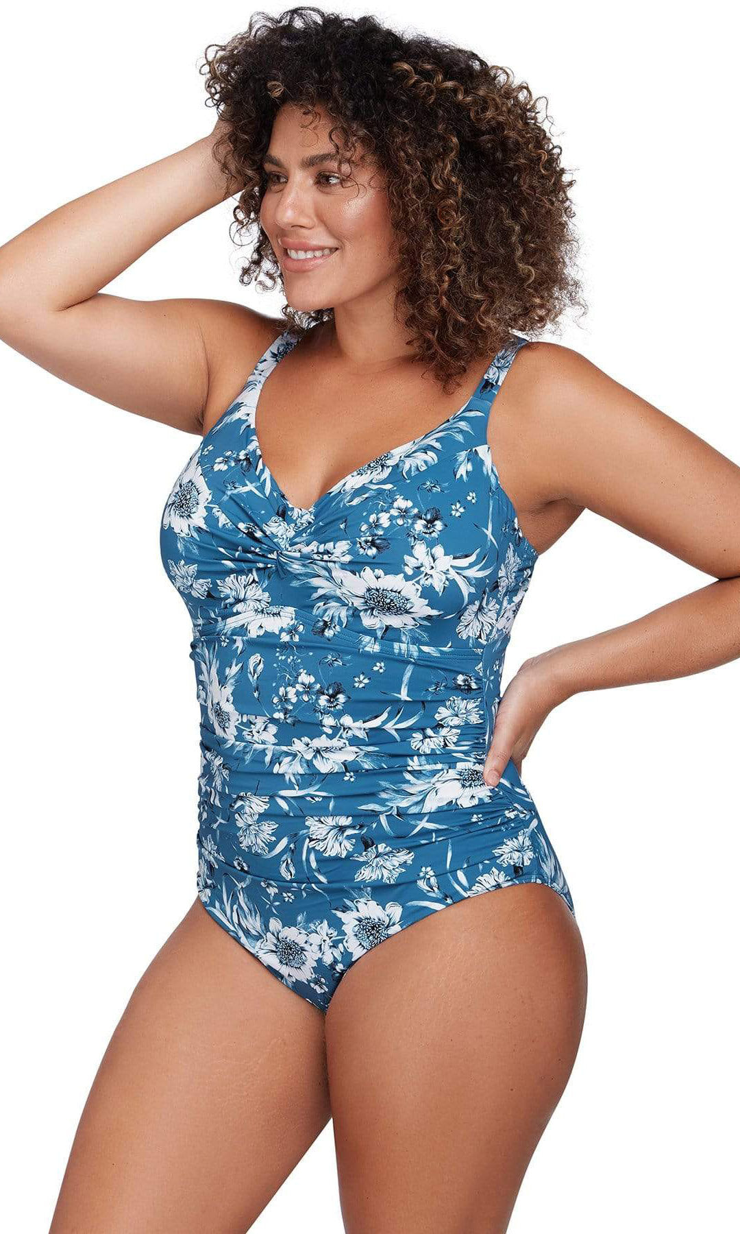Artesands Fits Your Curves. Monet is our soft cup one piece style designed specially to fit the curves of curvy and plus size women. Monet is a new take on a comfortable natural shape cup, with a relaxed look and a beautiful loop through feature on the outside with full supported structure on the inside. This curve fit and plus size one piece swimsuit has underwire support to fit a D cup to DD cup with removable soft moulded cups. Our Monet style also has full 360 degree powermesh and front ruching detail for body sculpting confidence. Monet has good moderate bottom coverage.