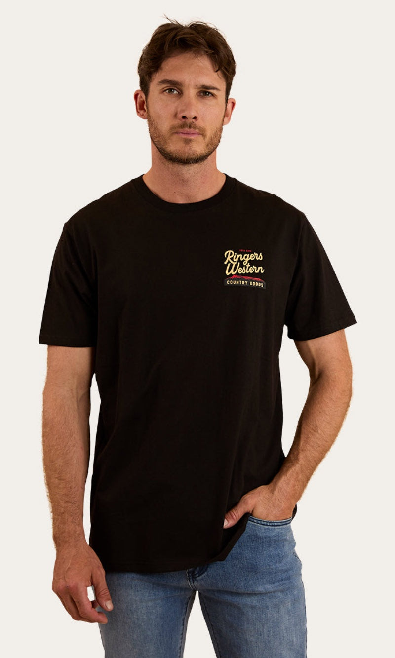 Created from 100% cotton jersey, this soft and breathable tee provides all day comfort whilst keeping you cool. The loose fit design provides extra room in the chest, waist and hip areas - perfect for those who like to have room to move. A crew neckline adds to the classic appeal of this tee, whilst a serene Ringers Western landscape artwork perfectly captures the grandeur of the outback.