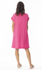 Linen Dress Cap Sleeve Solid Hot Pink