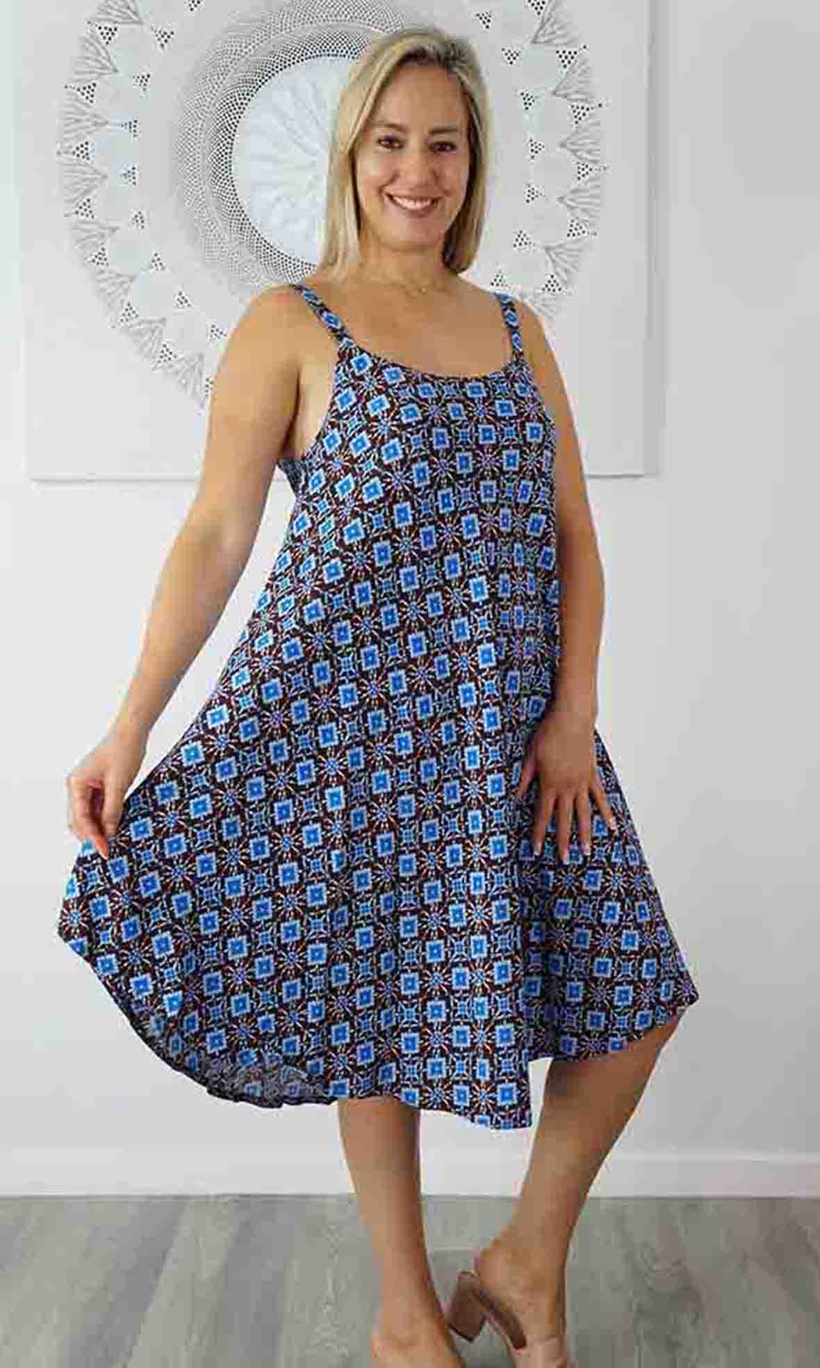 Our Montego Dress brings you a comfortable, flowing sun dress that's great for those relaxing days. With its wide adjustable straps, cool rayon fabric & vibrant new prints.