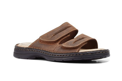 Slide on into a pair of these beauties and be exposed to the true meaning of comfort. Featuring a memory foam sole that feels like your walking on clouds and topped with classic chestnut brown leather that gives the sandal a timeless feel, this sandal is the uncontested king of footwear.