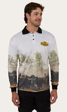 Anchor down and hook on while wearing a Ringers Western fishing jersey. Made from 100% Polyester, this fabric guarantees a lightweight and comfortable feel against the skin, along with unmatched durability. Featuring a fade-resistant sublimation print, you'll be bringing part of the country to the coast.