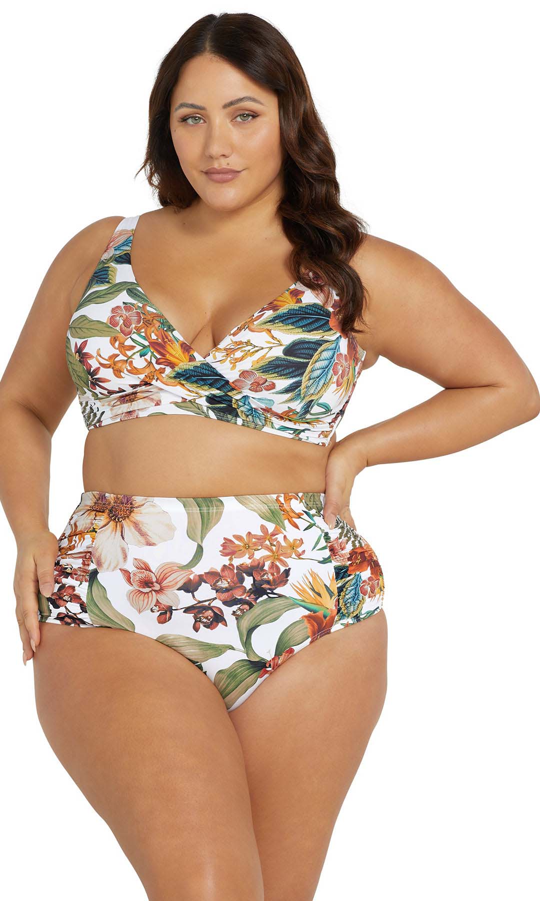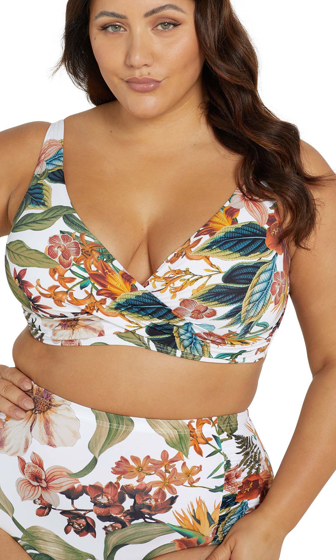 - Cross over front - The front of this curvy swimsuit is a cross over design that flatters the shape of your bust and adds extra wirefree support.