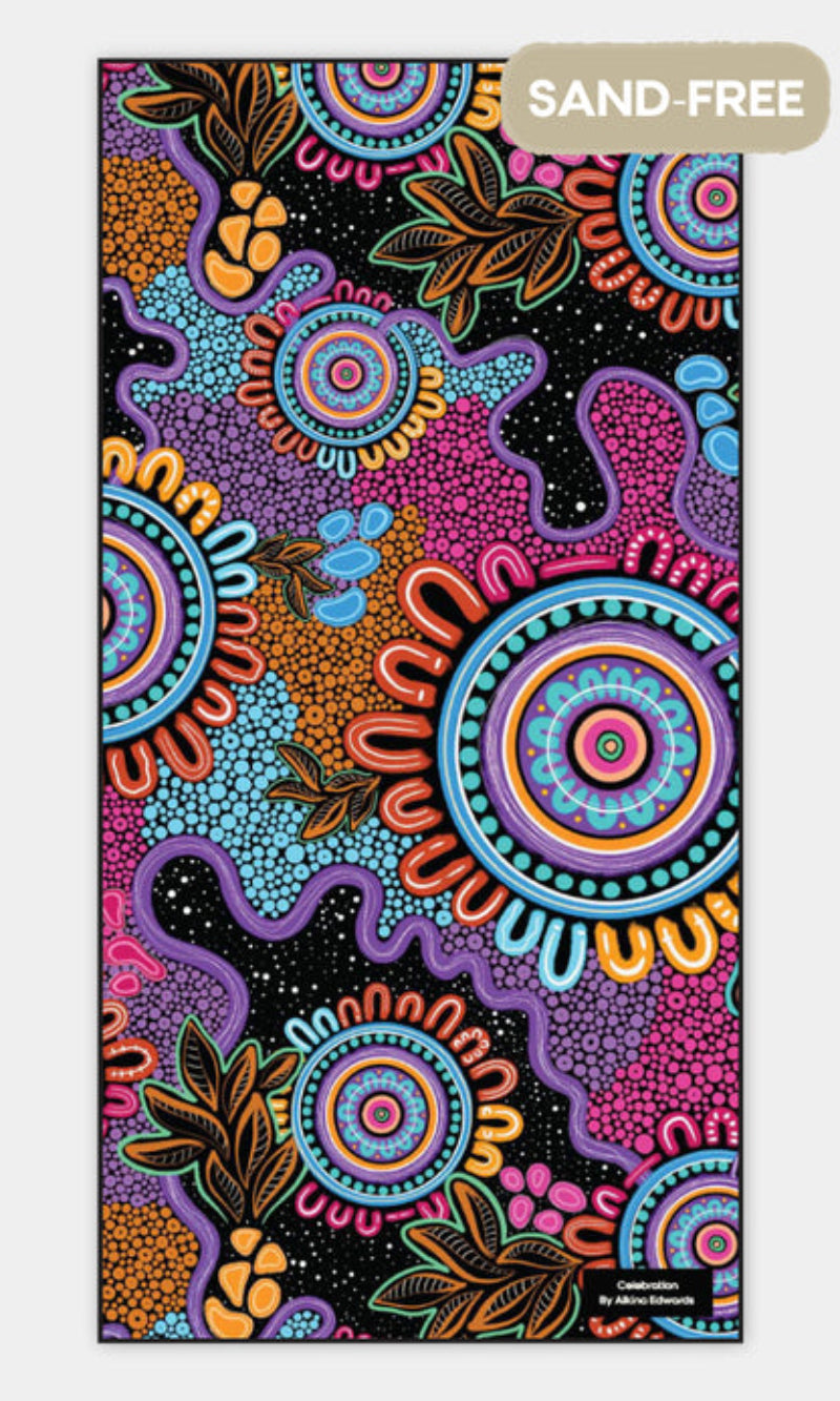 Aboriginal Art Beach Towel Sand Free Celebration (80x160)