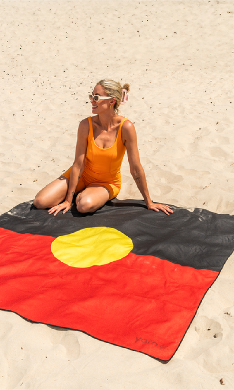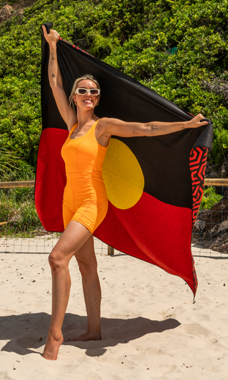 Aboriginal Art Beach Towel Sand Free "Raise The Flag" (160x160)
