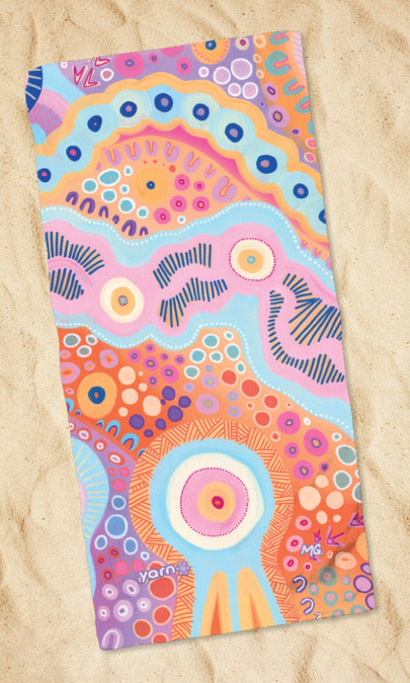 Brighten up your adventures with vibrant First Nations artwork. Whether you're hitting the coast, pool, or park, this towel is your go-to for fun, colour, and everyday practicality outdoors.