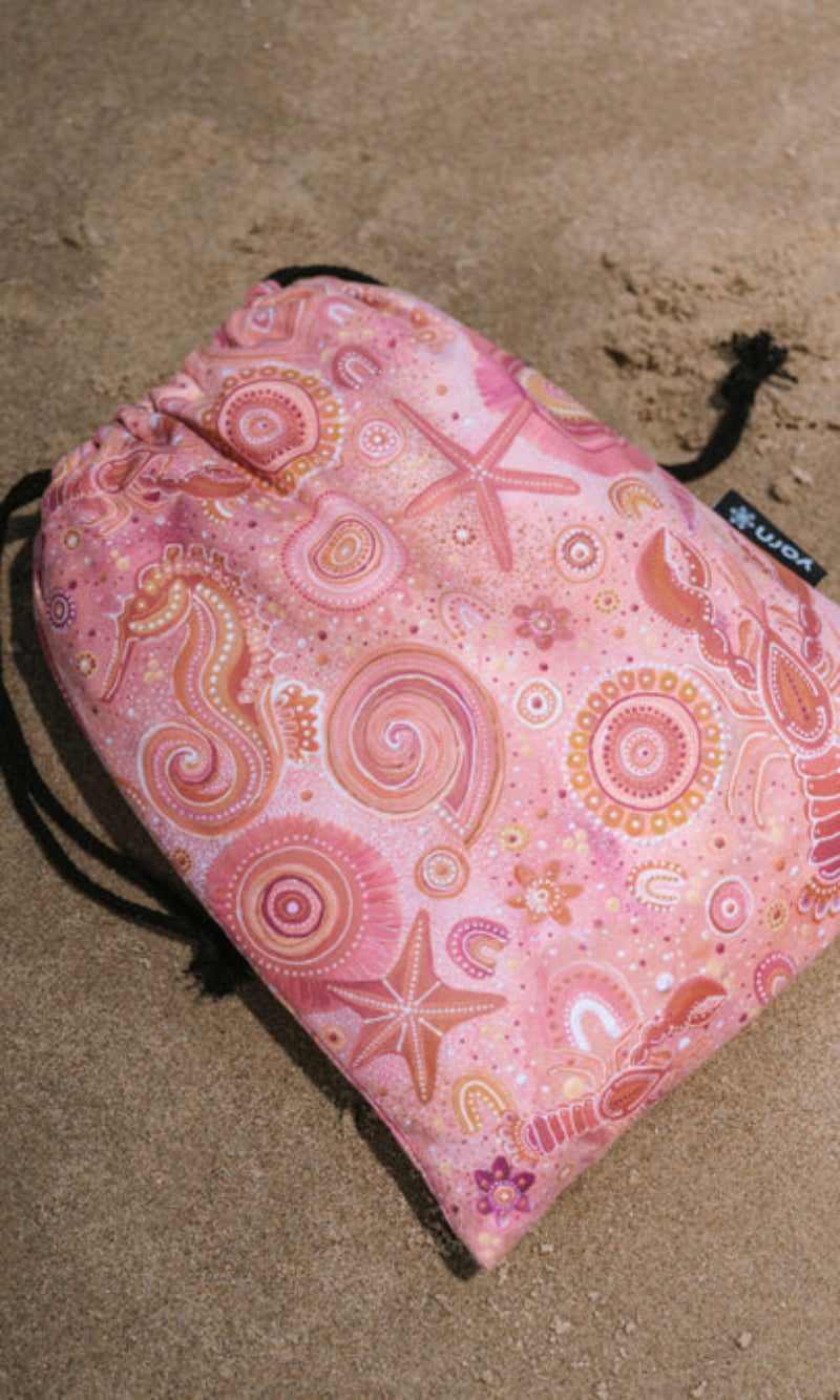 Elevate your next trip to the shore with our luxurious Sand-Free Beach Towels, each featuring stunning artwork by First Nations artists. More than just a towel, they’re a vibrant canvas that carries unique stories of artwork and creativity. Designed to bring comfort and meaning to your day, they’re the perfect companion for relaxing by the water while celebrating artistry in an ally-friendly way.