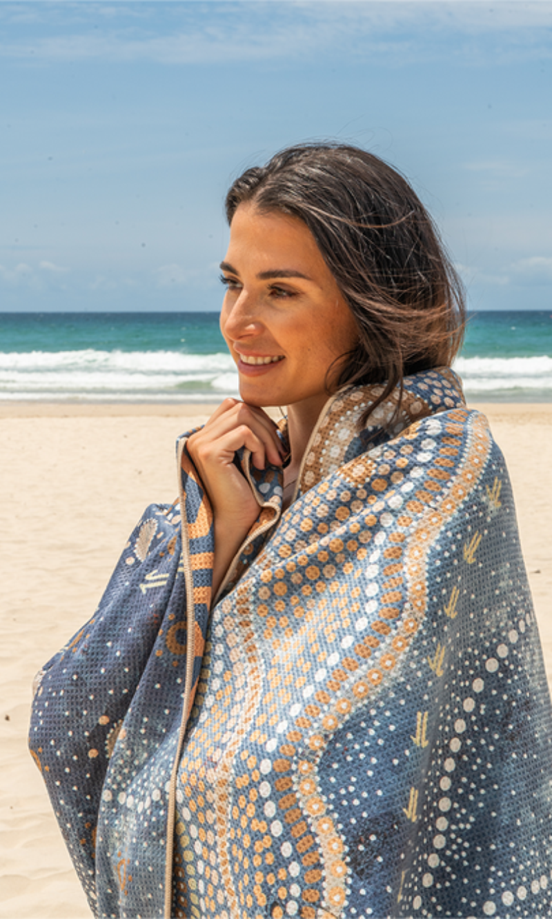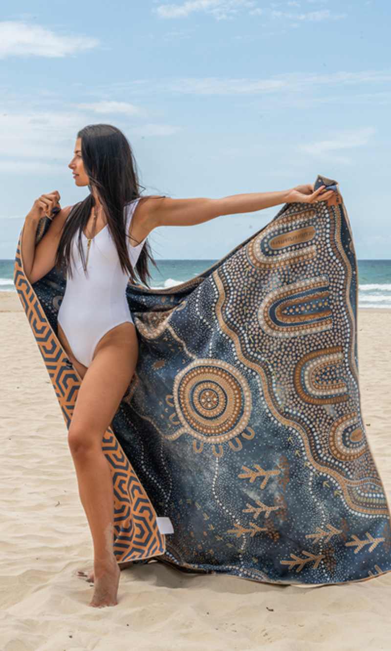 Elevate your next trip to the shore with our luxurious Sand-Free Beach Towels, each featuring stunning artwork by First Nations artists. More than just a towel, they’re a vibrant canvas that carries unique stories of artwork and creativity. Designed to bring comfort and meaning to your day, they’re the perfect companion for relaxing by the water while celebrating artistry in an ally-friendly way.