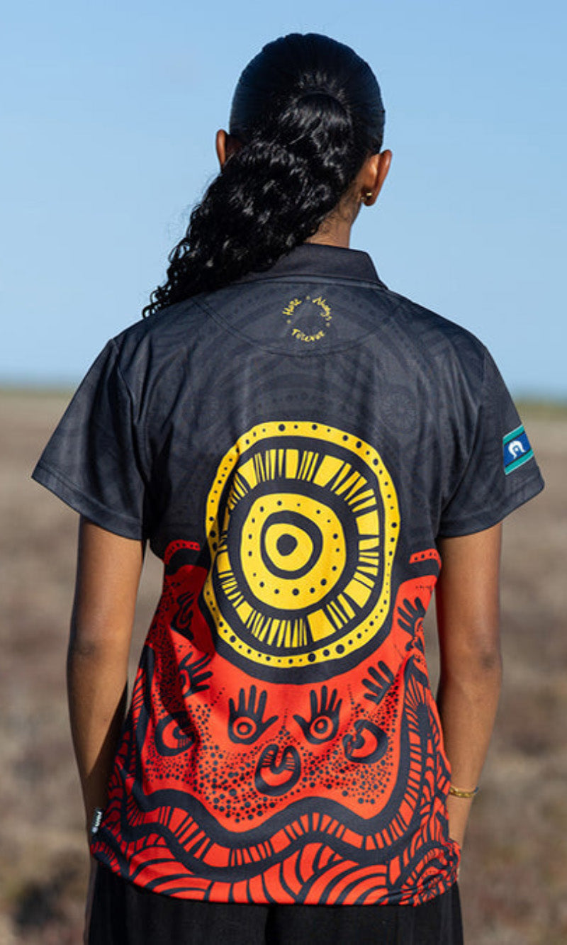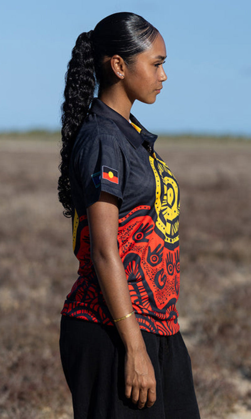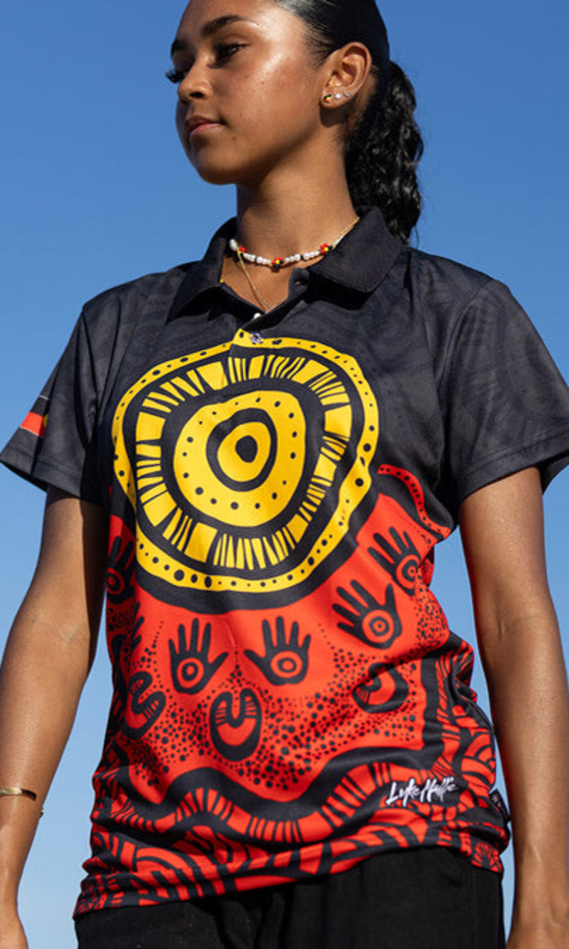 Meet your new favourite Polo Shirt – where everyday comfort meets vibrant expression. Designed to move with you from workdays to weekends, it brings colour, confidence, and meaning to every moment. Whether it’s a family day out, your casual Friday fit, or a daily statement of support, the bold artwork celebrates connection and Culture with effortless style.