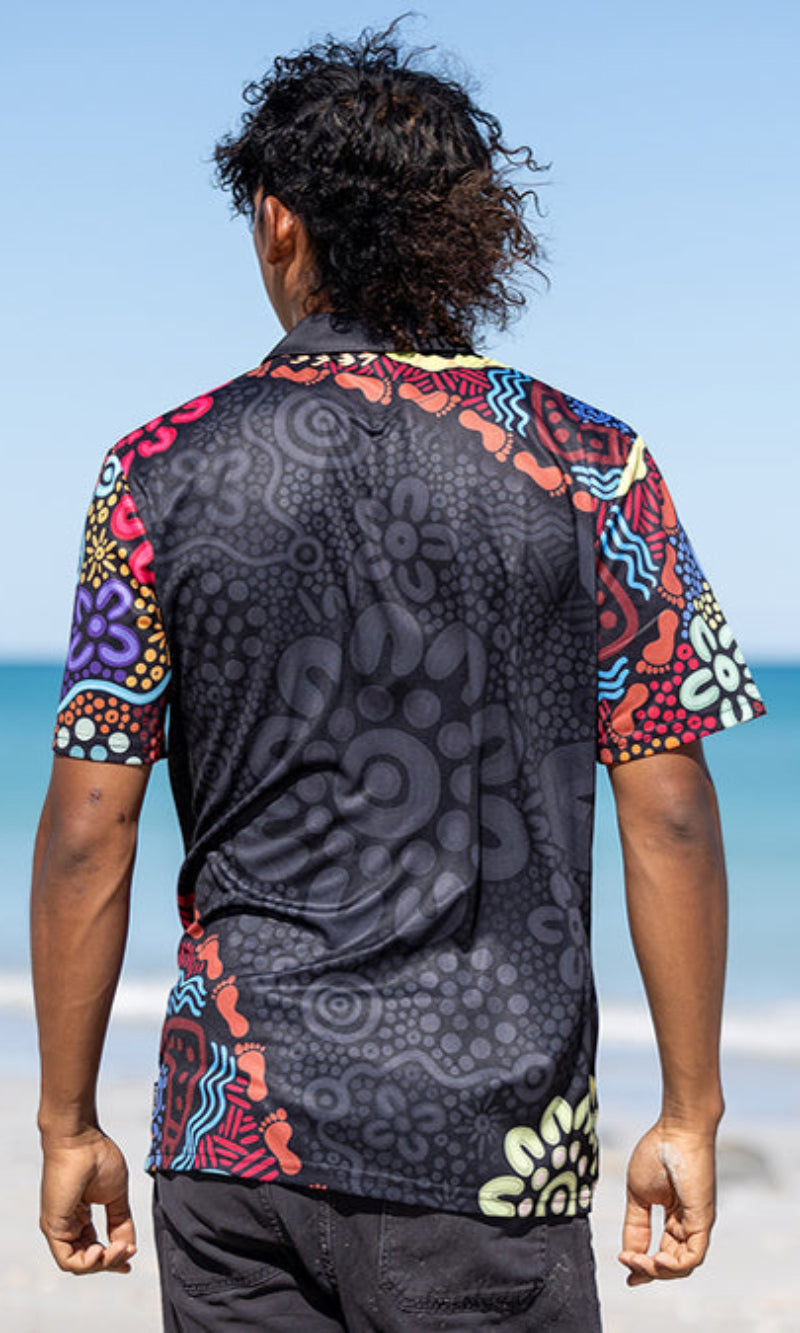 With built-in UPF50+ sun protection, you can enjoy the outdoors with confidence, knowing your skin is shielded from harsh UV rays. Available in unisex, fitted, and kids’ sizes, this polo is more than just everyday wear—it’s a vibrant celebration of First Nations culture, designed to be seen and appreciated wherever you go.