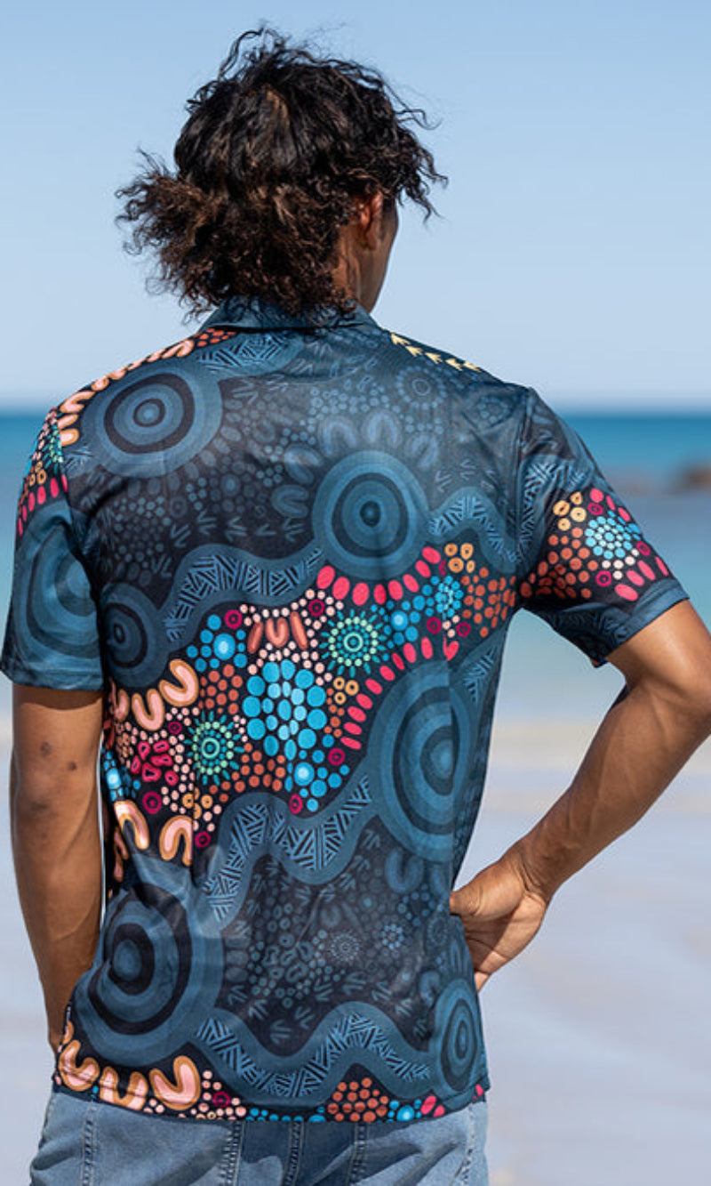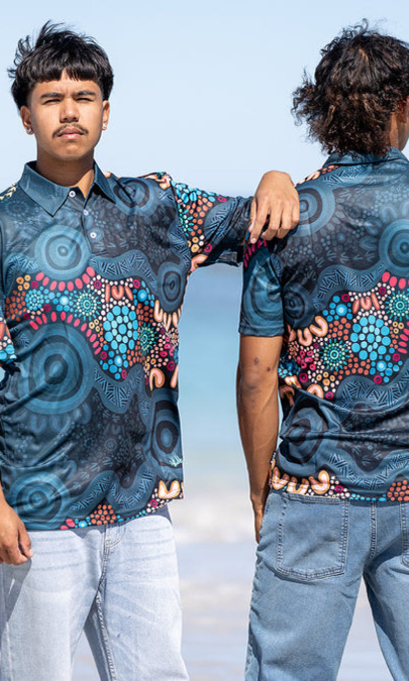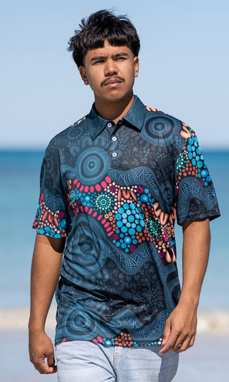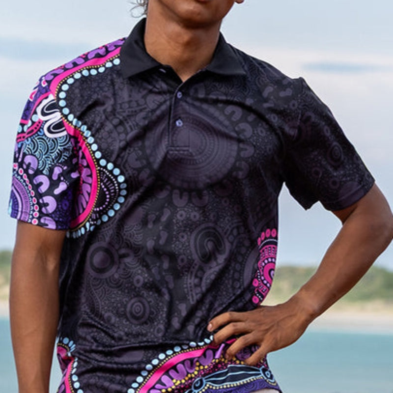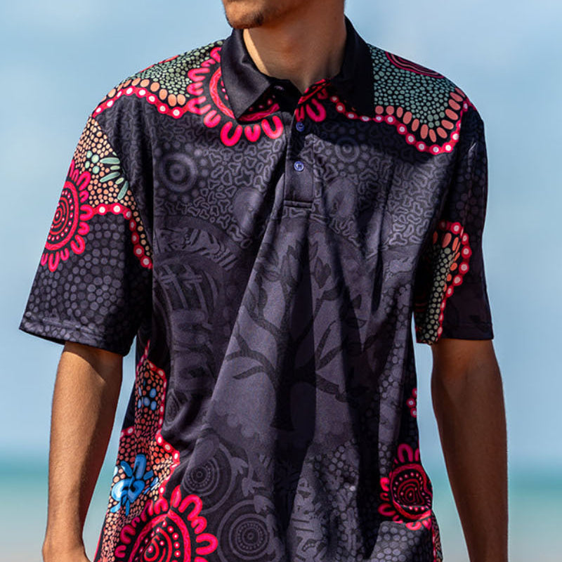 With built-in UPF50+ sun protection, you can enjoy the outdoors with confidence, knowing your skin is shielded from harsh UV rays. Available in unisex, fitted, and kids’ sizes, this polo is more than just everyday wear - it’s a vibrant celebration of First Nations Culture, designed to be seen and appreciated wherever you go.