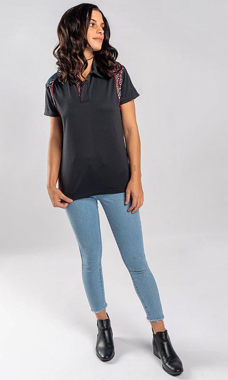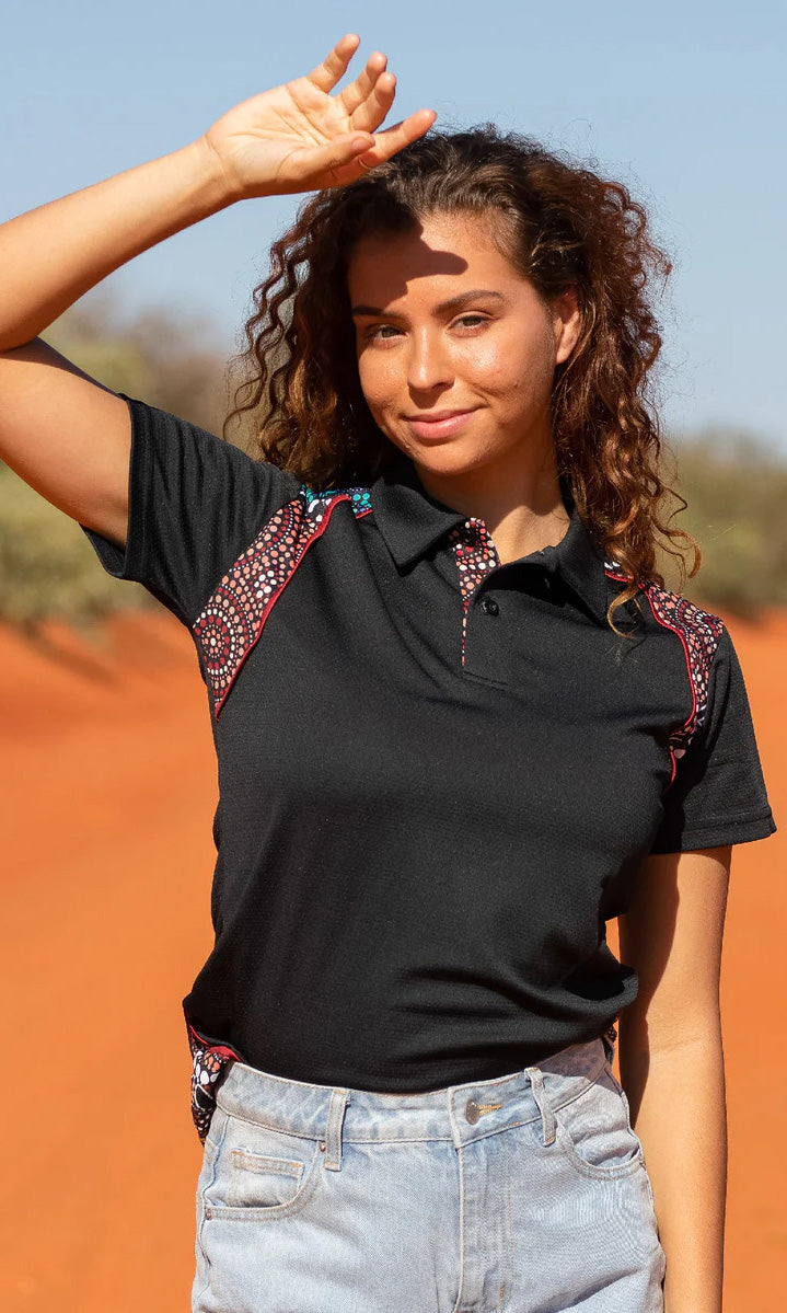 Aboriginal Art Ladies Fitted Bamboo Polo Heal Our Nura
