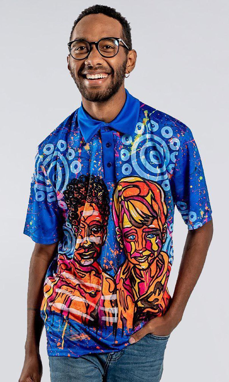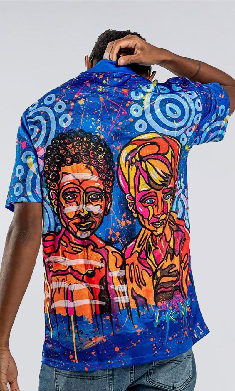 When we learn from yesterday it makes us stronger today. Respect for each other allows us all to have a voice. The two boys represent a brighter future for Indigenous and non-Indigenous cultures to live in harmony and unity.