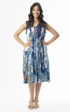 Cotton Dress V Neck Pleated Tower Blue