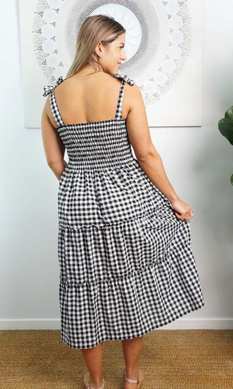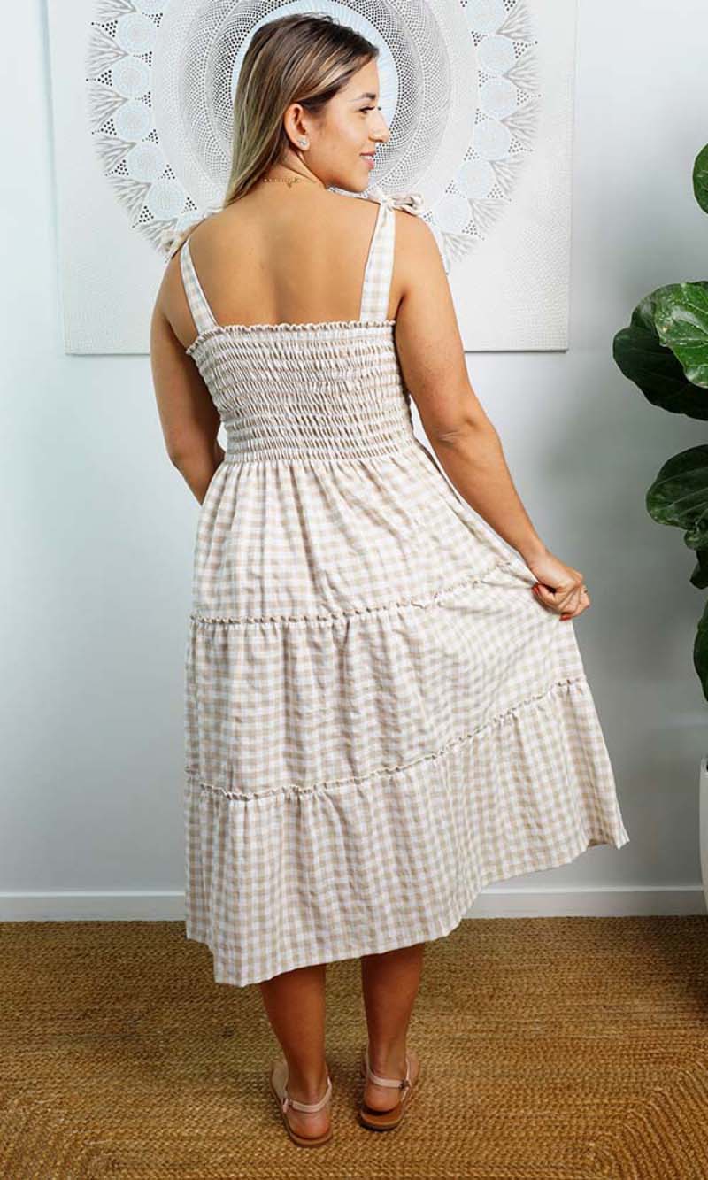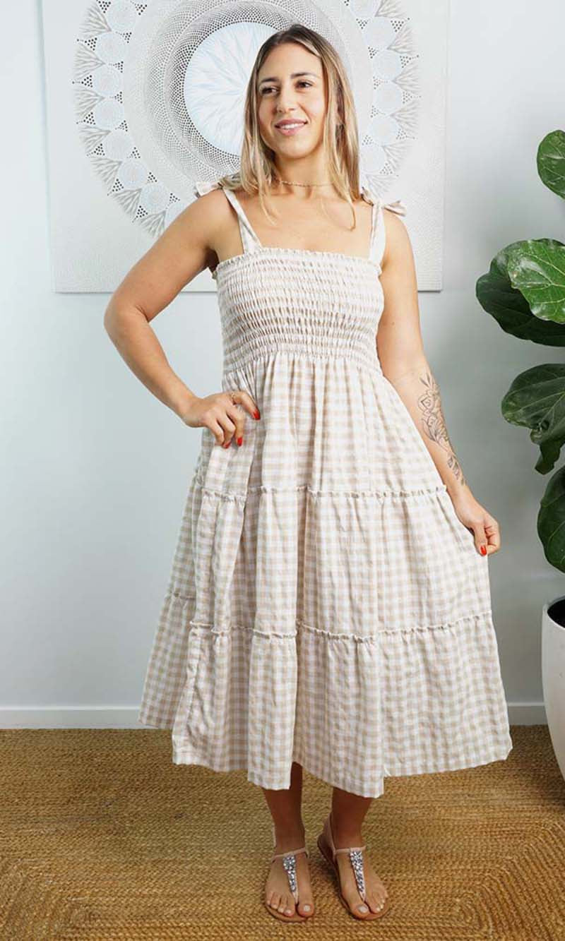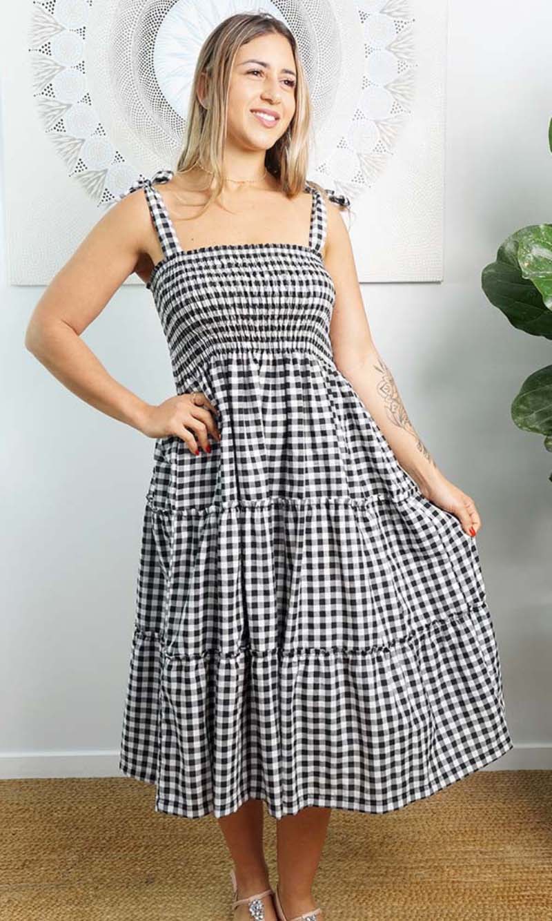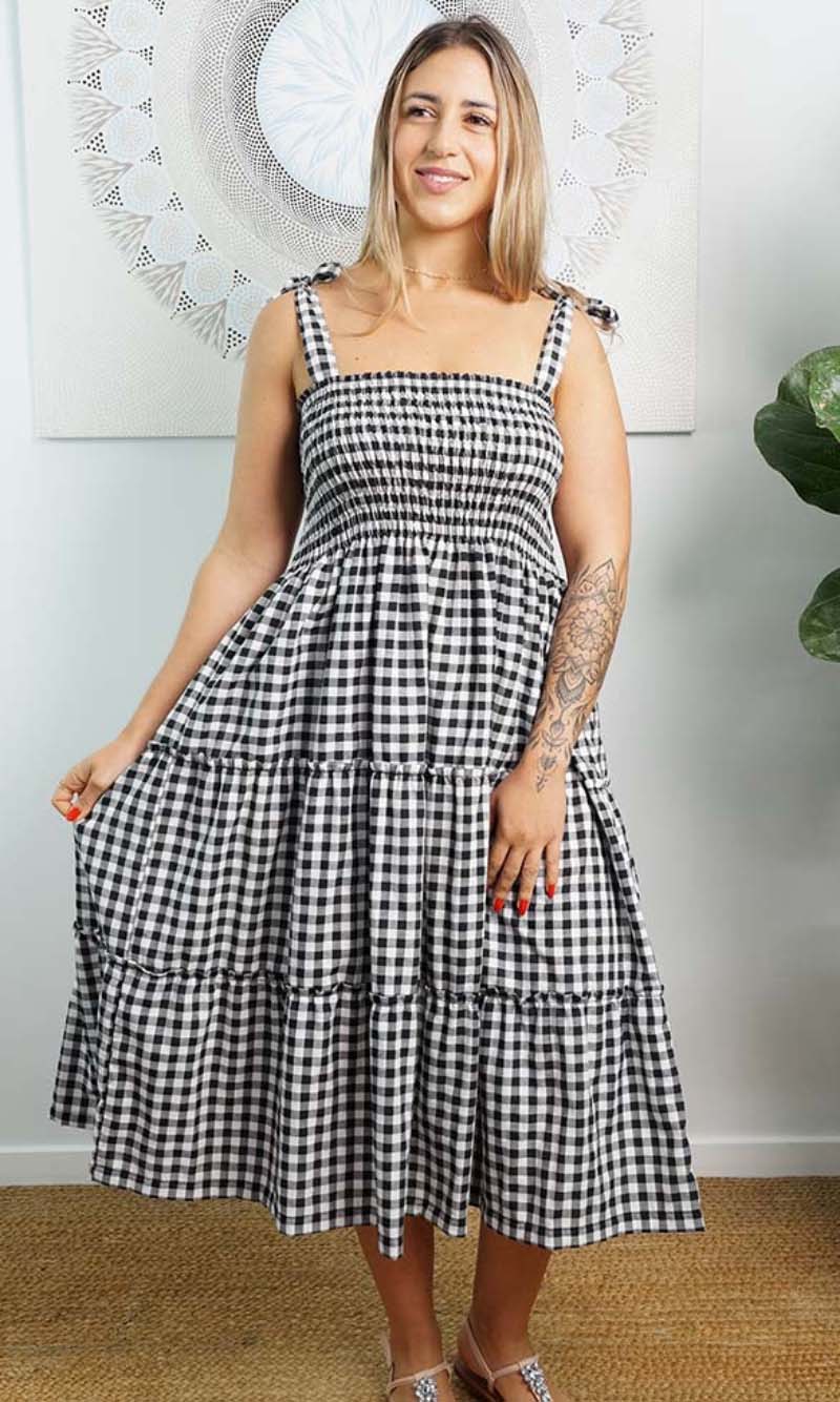 Rayon 3/4 Tie Up Smock Dress Gingham, More Colours