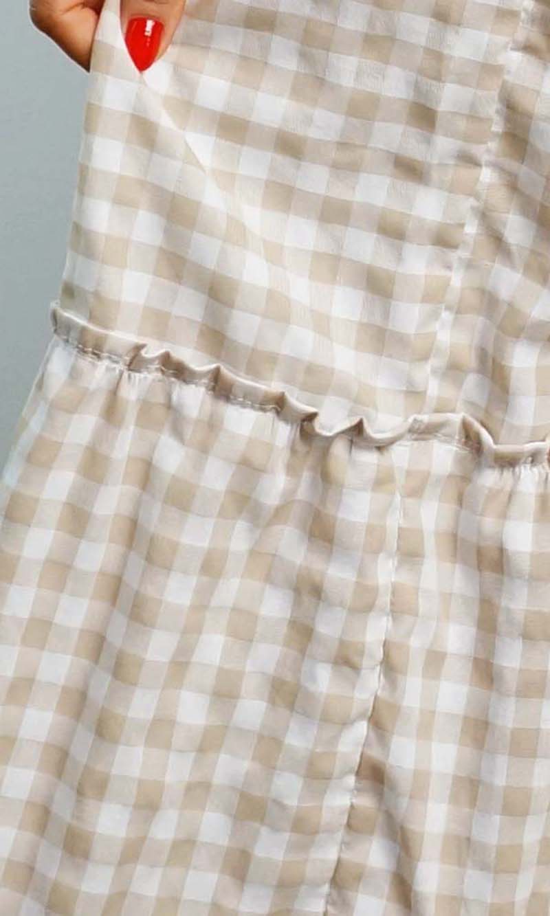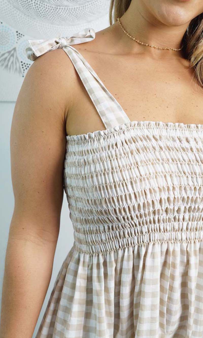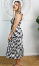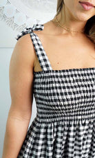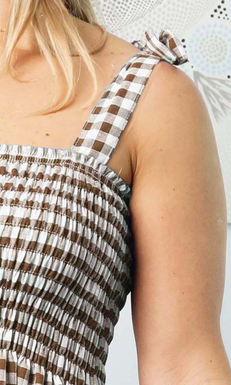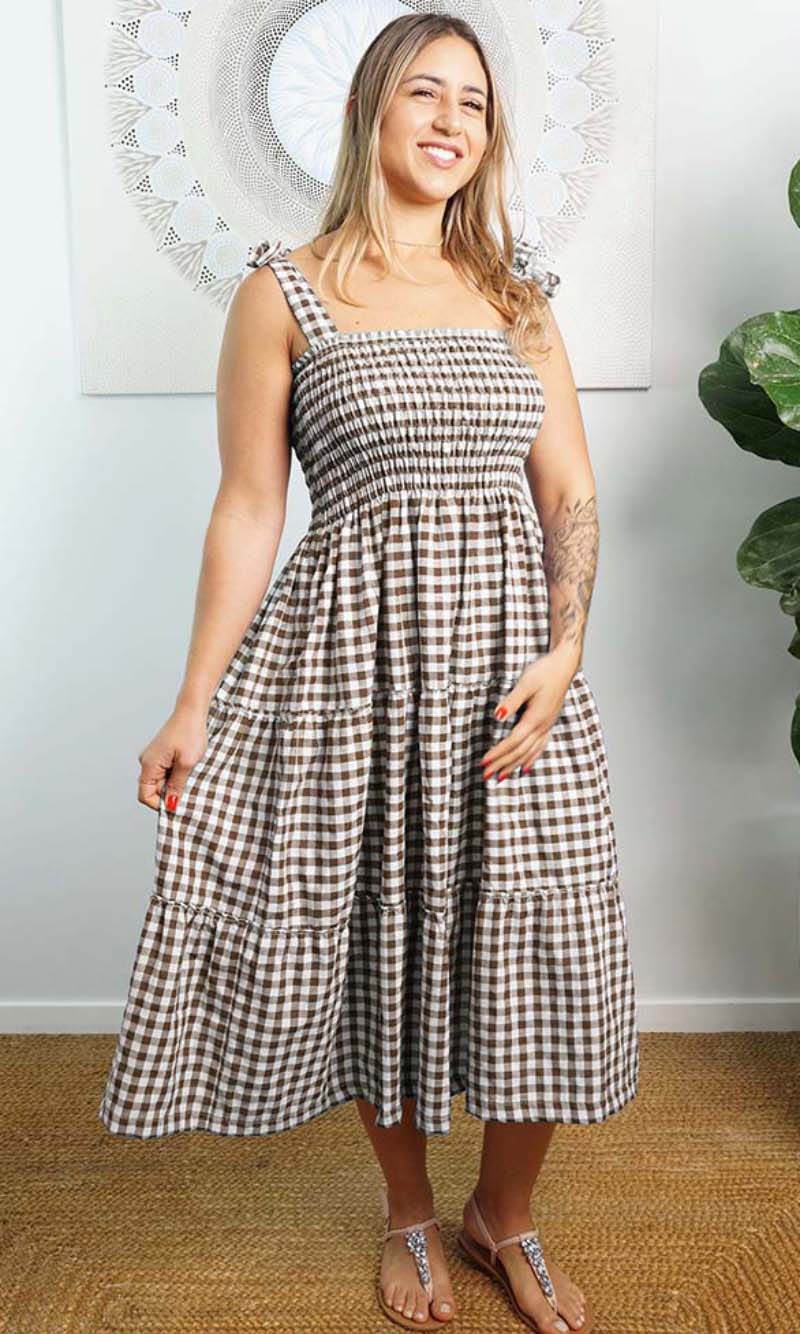 Rayon 3/4 Tie Up Smock Dress Gingham, More Colours
