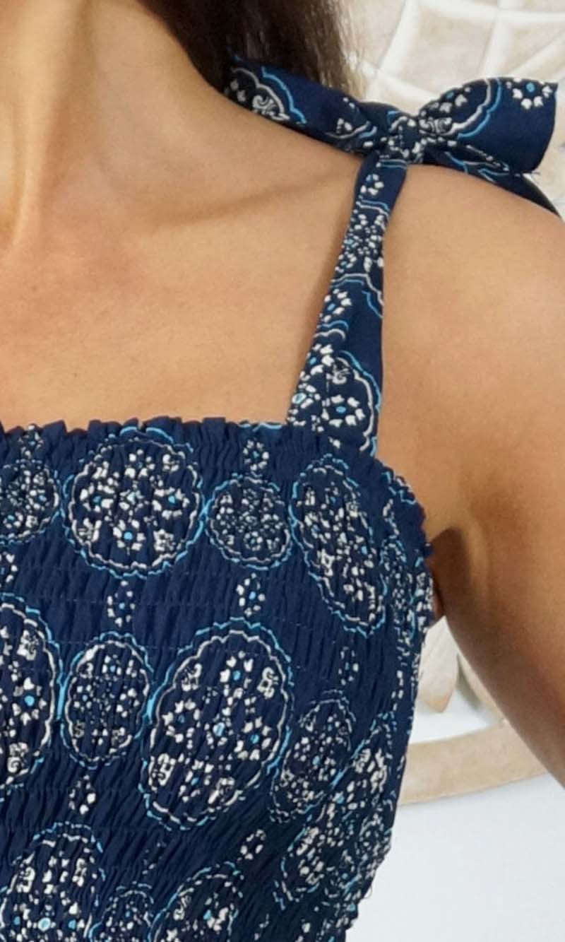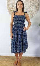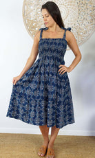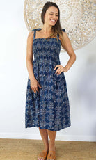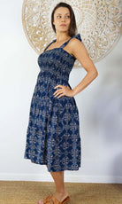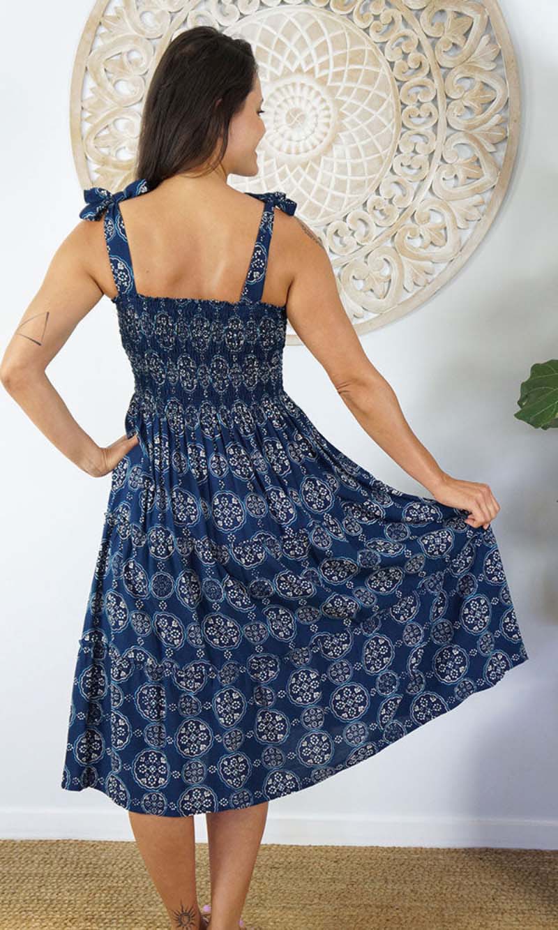 Rayon 3/4 Tie Up Smock Dress Katmandu Navy