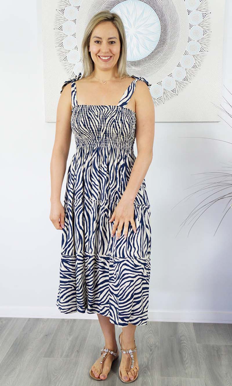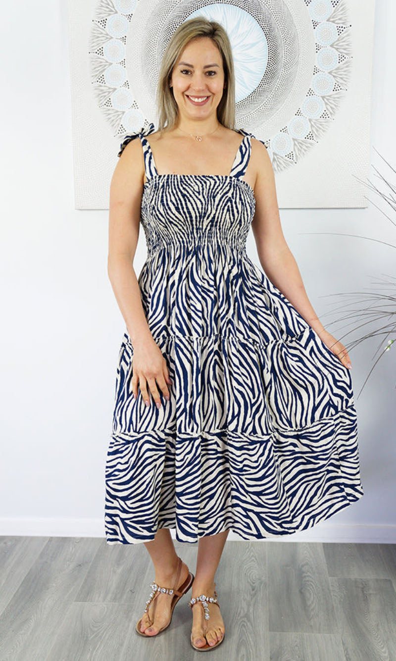 Rayon 3/4 Tie Up Smock Dress Madagascar, More Colours