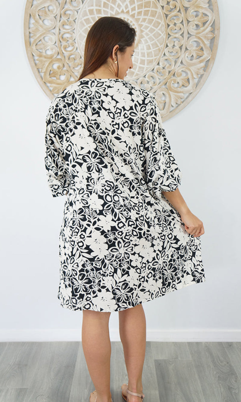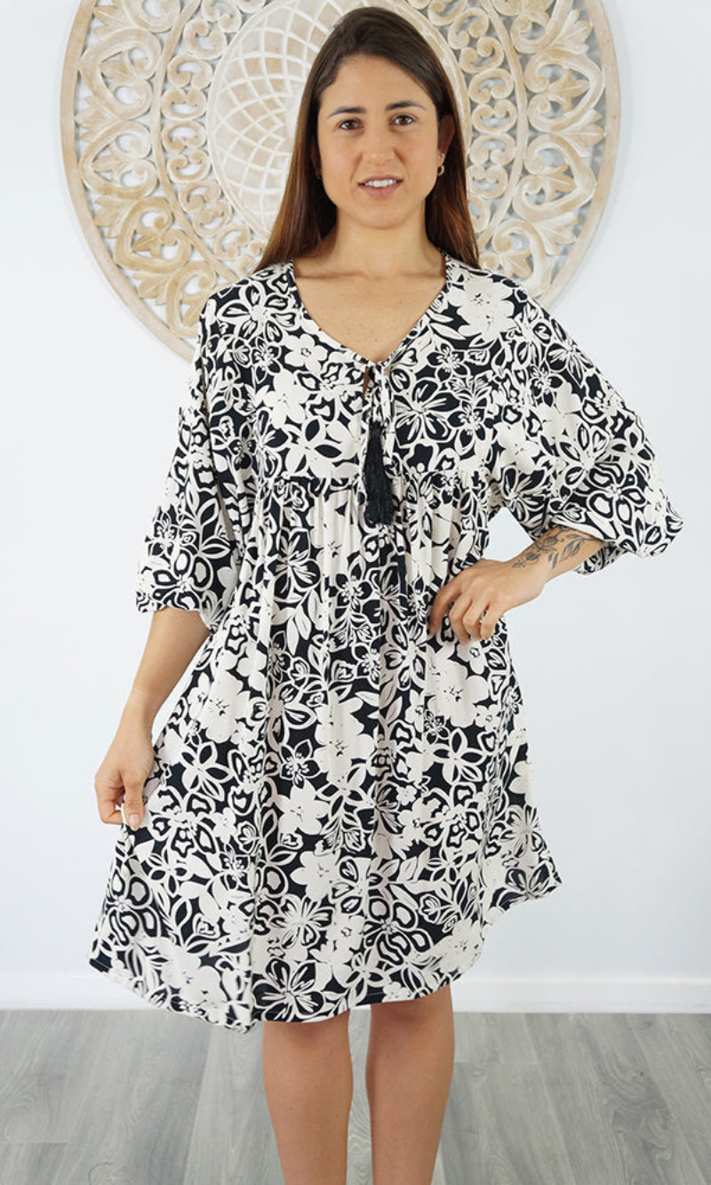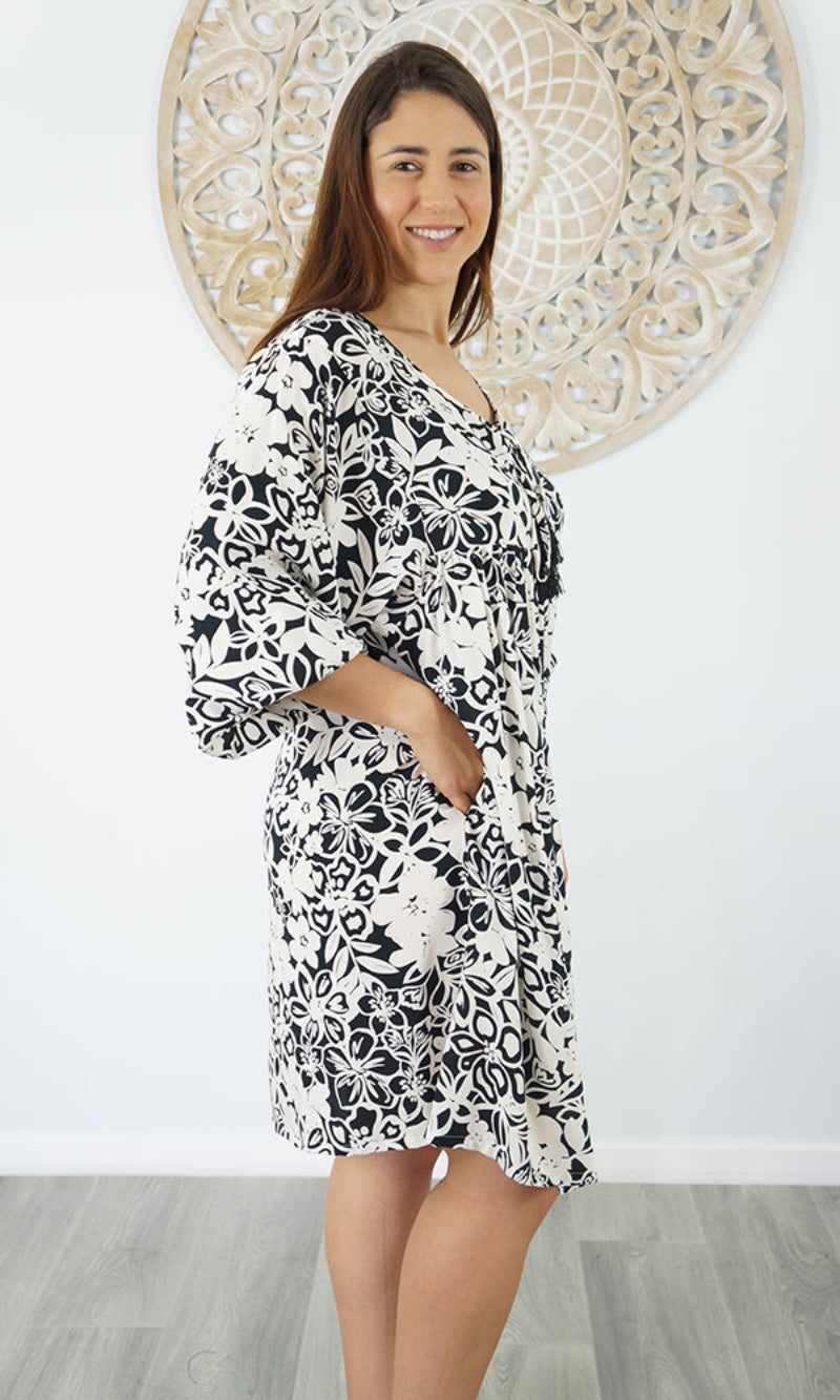 The Avocado Dress is a versatile choice for any wardrobe, providing both style and comfort. With a tie-up V-neckline and mid-length puff elastic arms, this dress also includes convenient side pockets. You will look and feel fabulous in this fabulous piece.