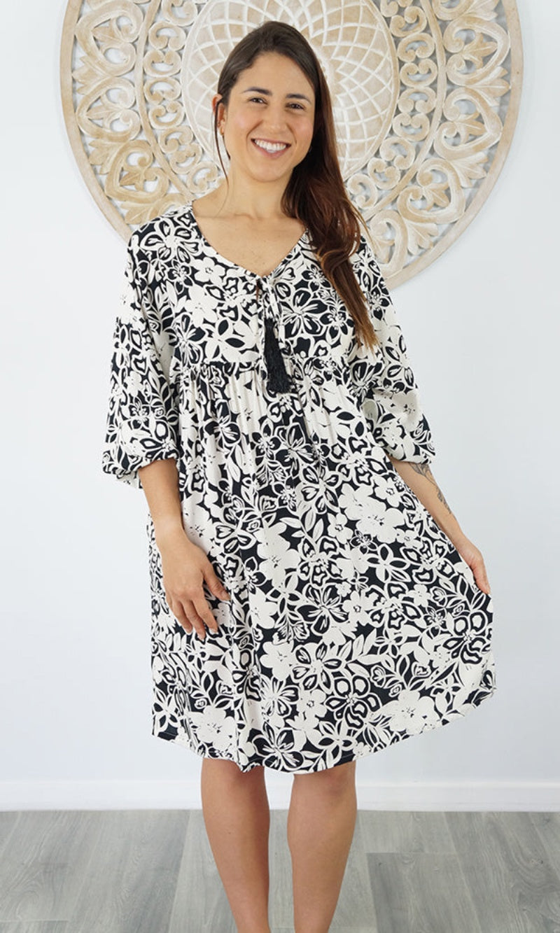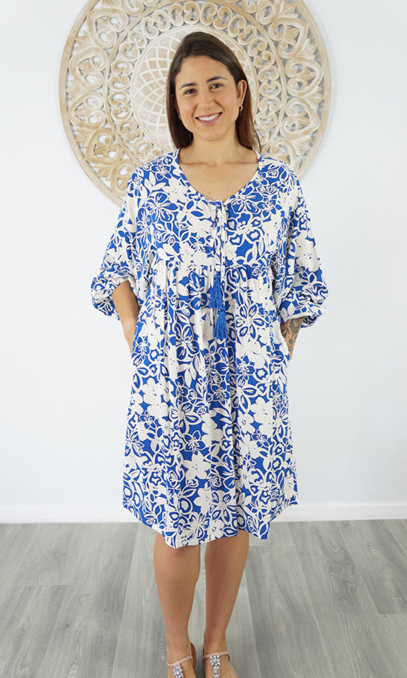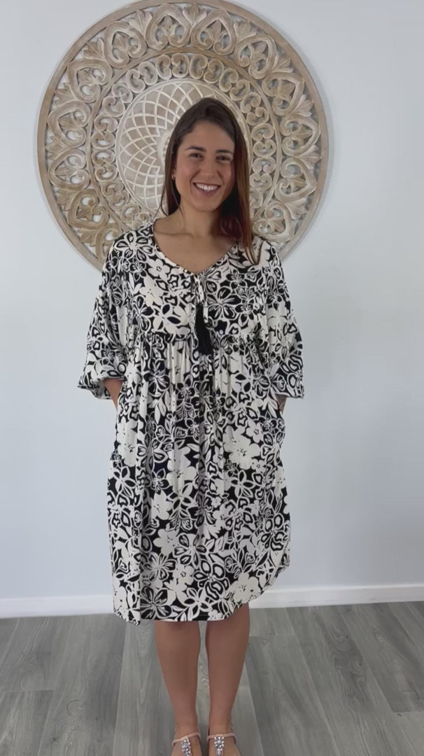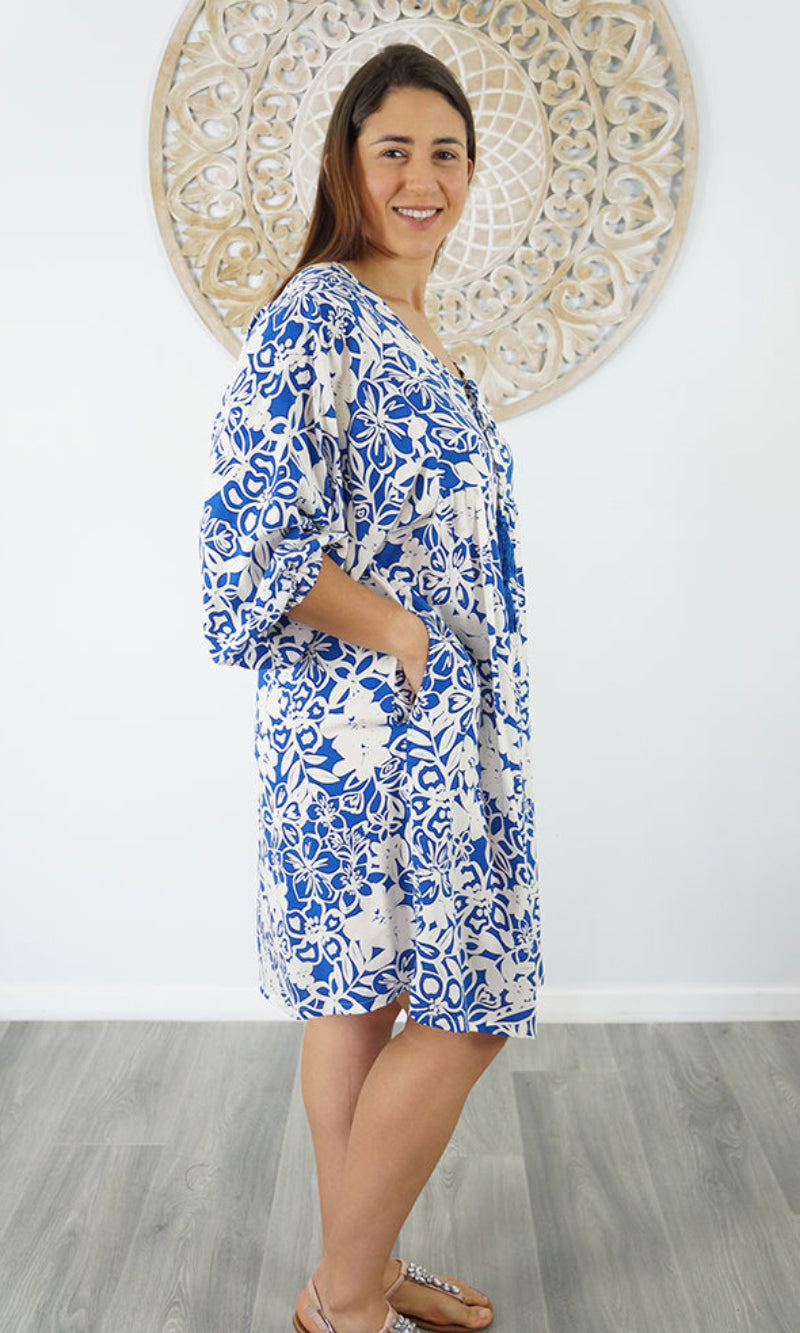 The Avocado Dress is a versatile choice for any wardrobe, providing both style and comfort. With a tie-up V-neckline and mid-length puff elastic arms, this dress also includes convenient side pockets. You will look and feel fabulous in this fabulous piece.