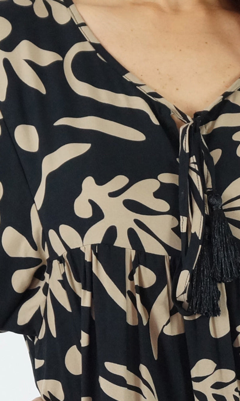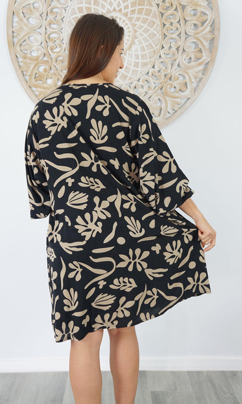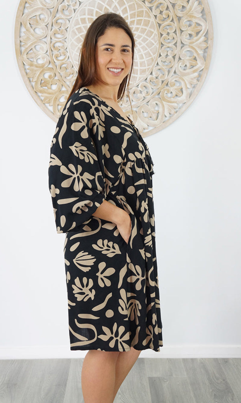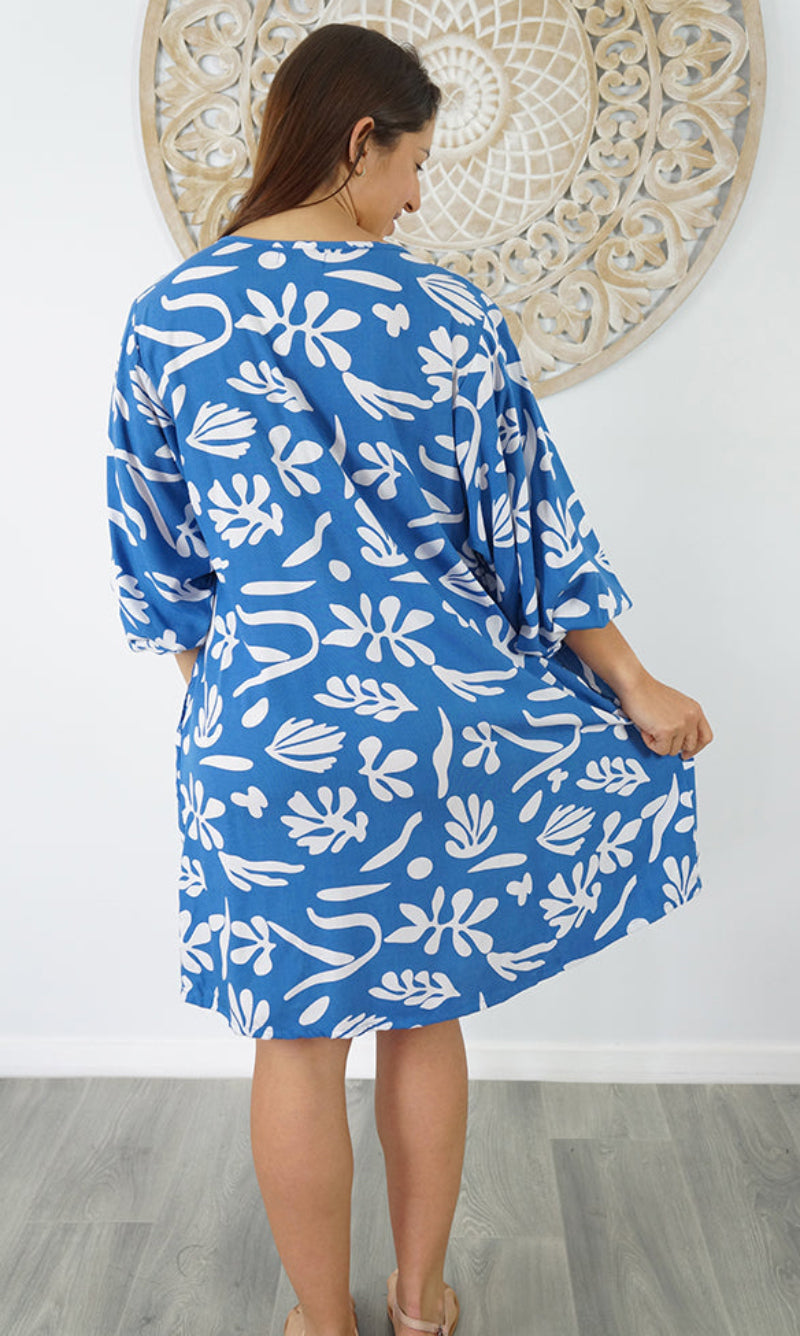 The Avocado Dress is a versatile choice for any wardrobe, providing both style and comfort. With a tie-up V-neckline and mid-length puff elastic arms, this dress also includes convenient side pockets. You will look and feel fabulous in this fabulous piece.