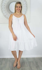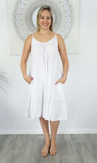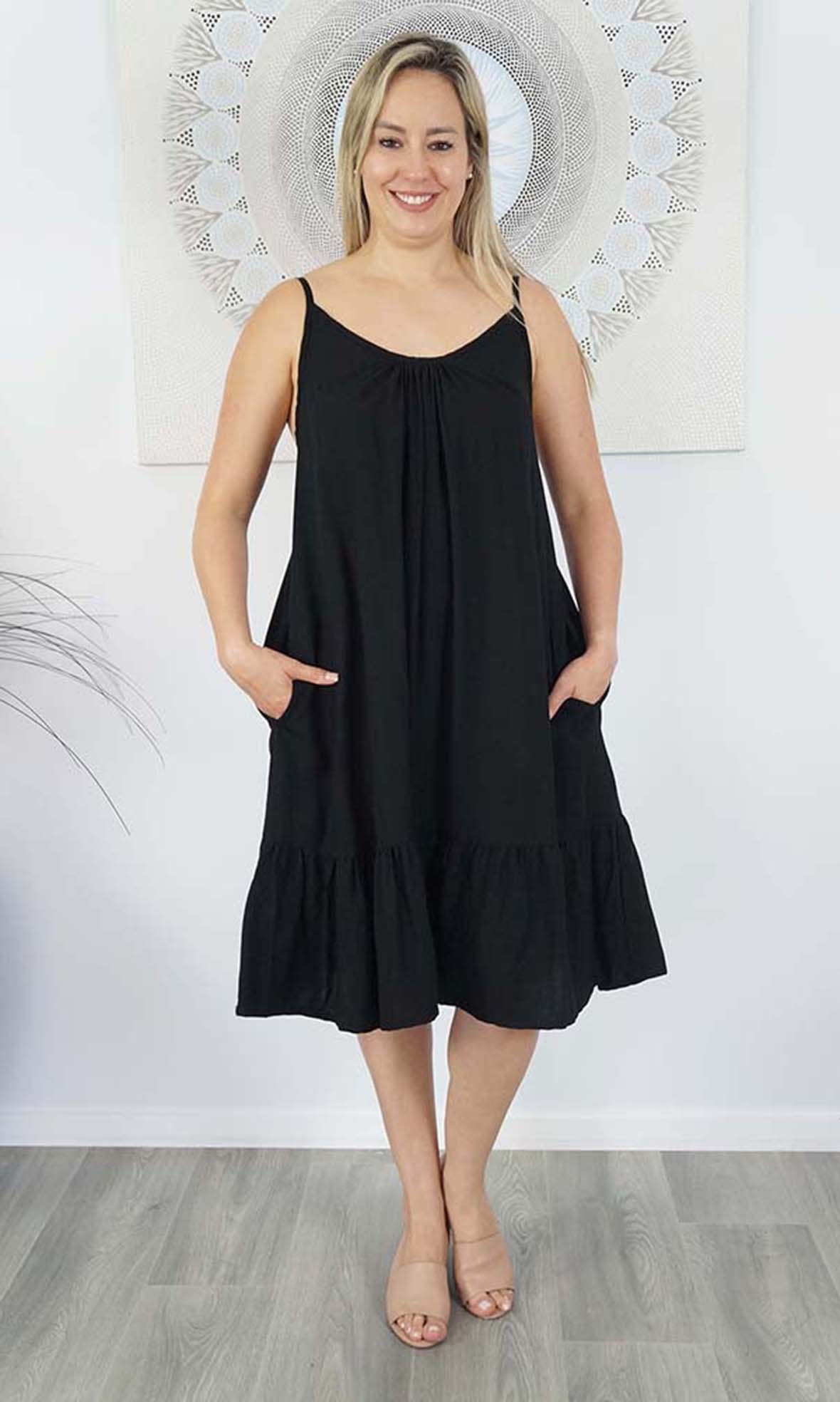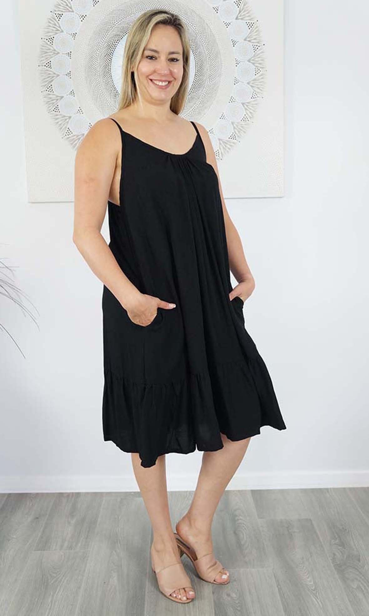 The Chandra Dress is a perfect addition to your collection & will have you looking and feeling fabulous in this style.  It features a round-neck line and body-hugging elastic under the arms and across the back, adjustable straps plus it's made from our soft cool rayon fabric.