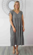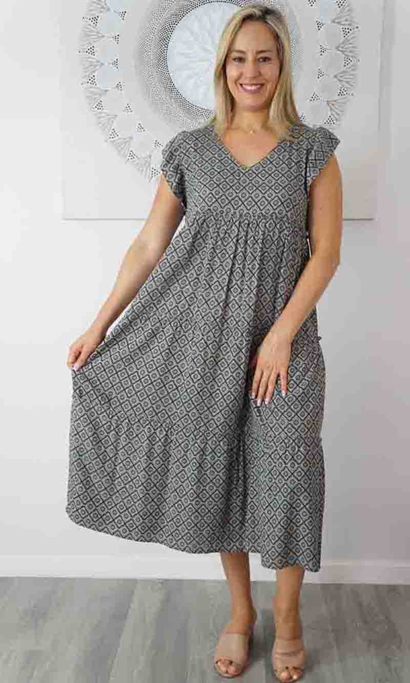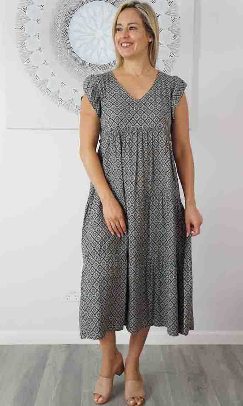The Costa Rica Dress is a beautiful piece. The free flowing nature and the paneling shape is made elegant with soft and smooth rayon material and frilled scapped sleeves makes this an elegant style for the ages.