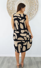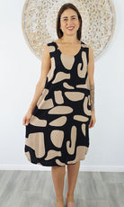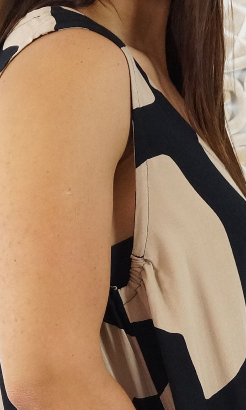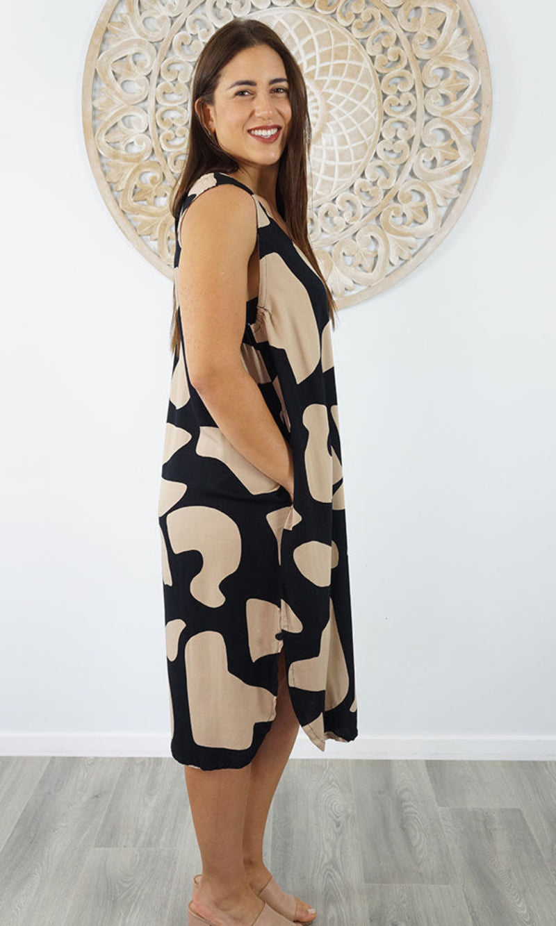 Expertly crafted from 100% rayon, this relaxed, wide-shoulder dress features adjustable elastic under the arms for a customizable fit for all body types.