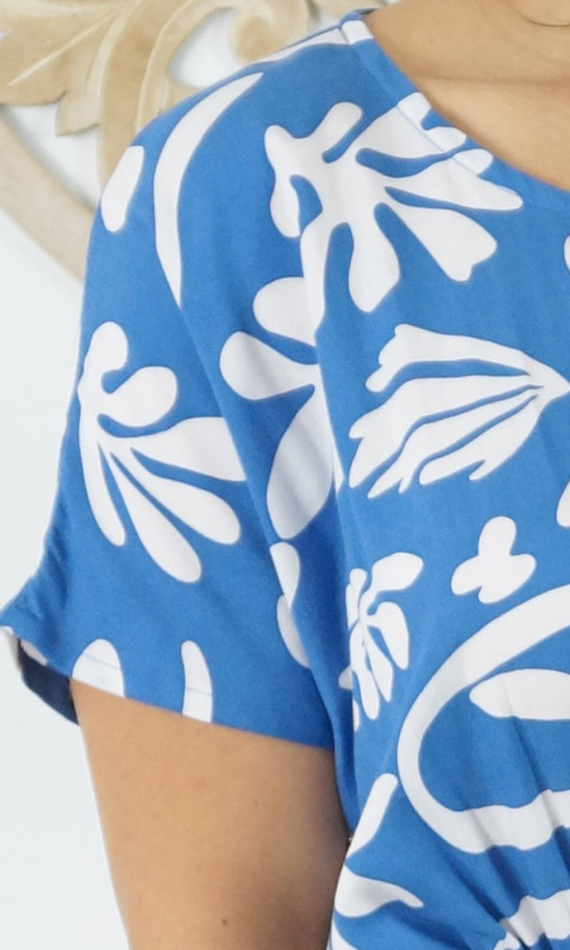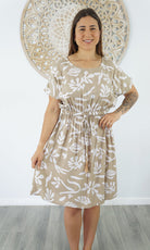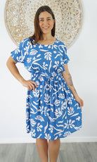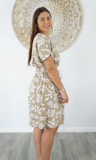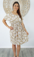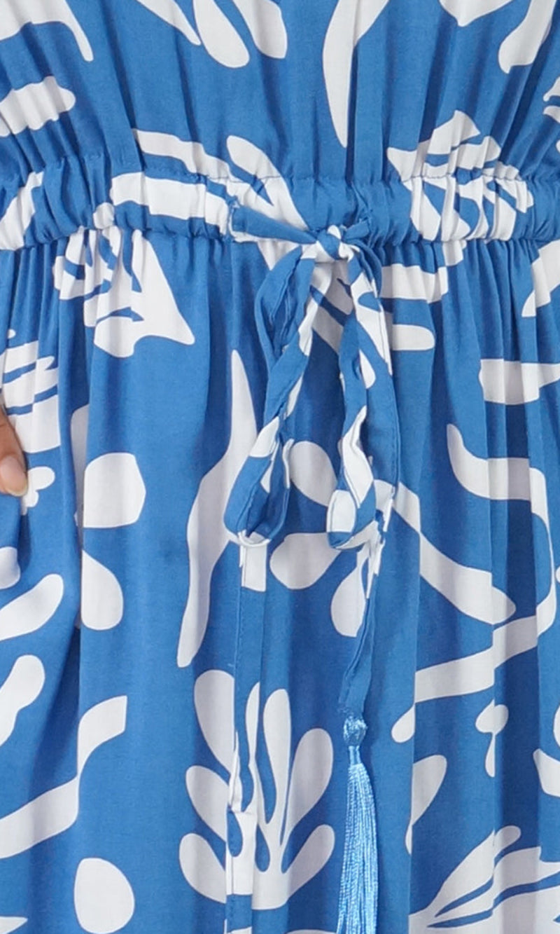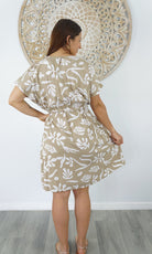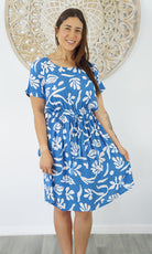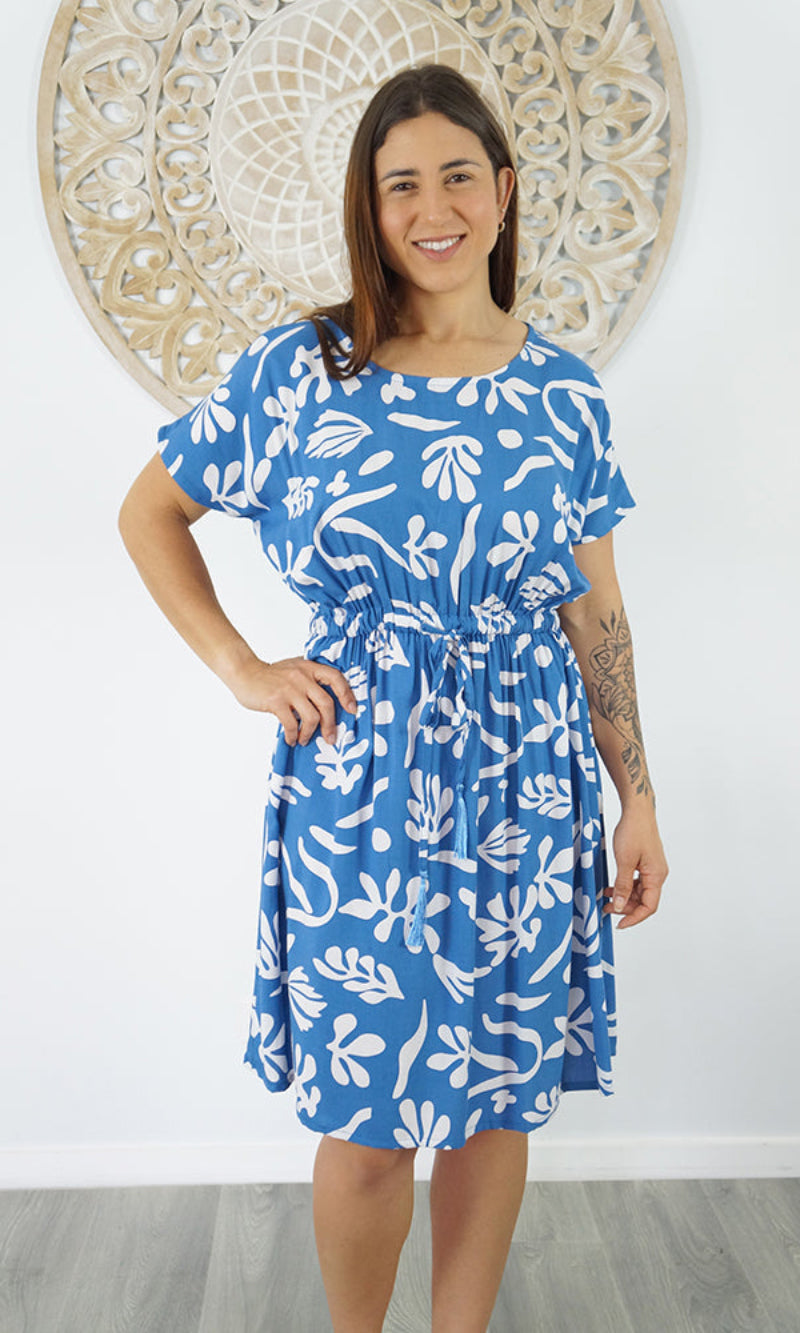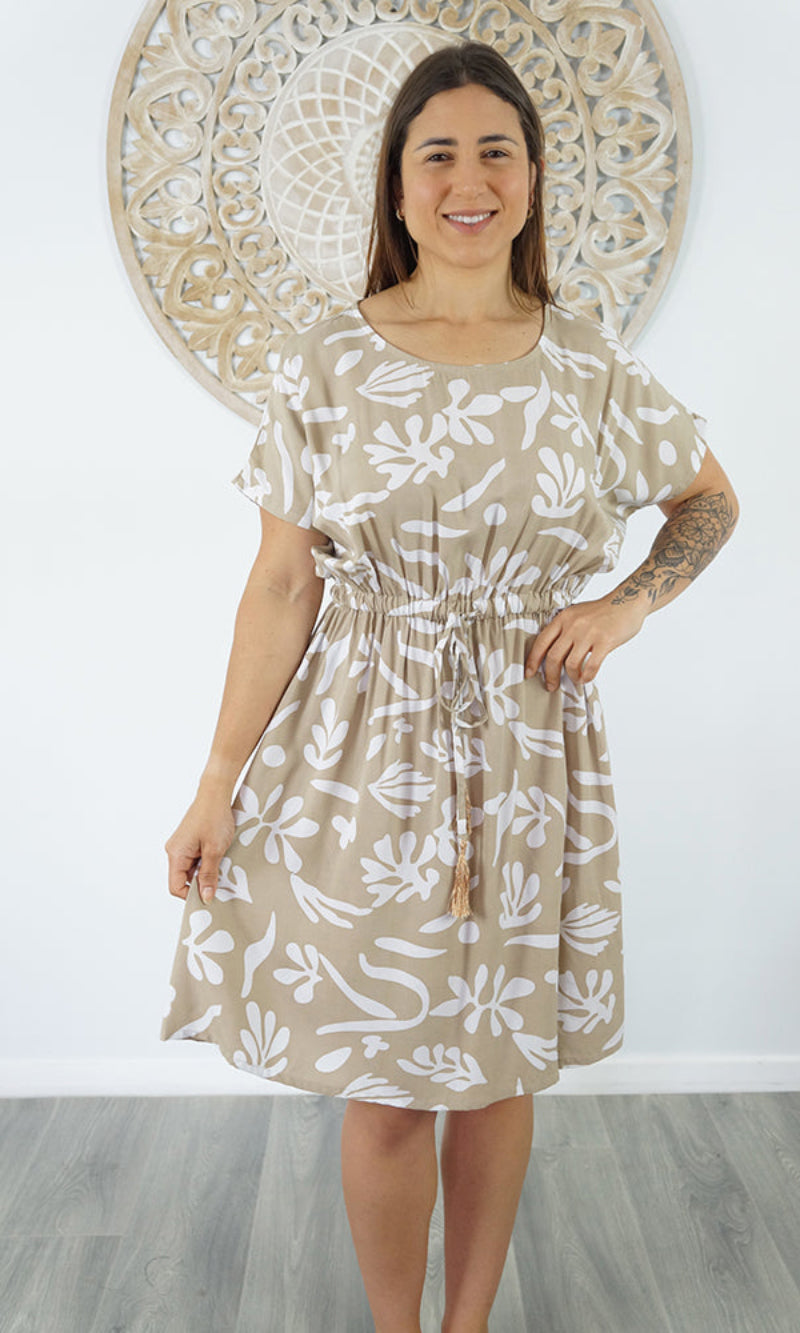 Expertly crafted from lightweight rayon, the "Asmat" print Getaway Dress features a comfortable elastic waist with a drawstring and tassel tips. Its casual short "batwing" sleeves make it perfect for a day at the pool or a trip to the beach. Available in sizes 8-12 and 14-18.