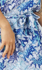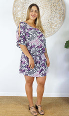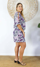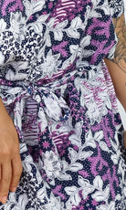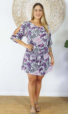Made from a cool rayon with open sleeves and a matching fabric tie for around the waist this dress is perfect for summer.