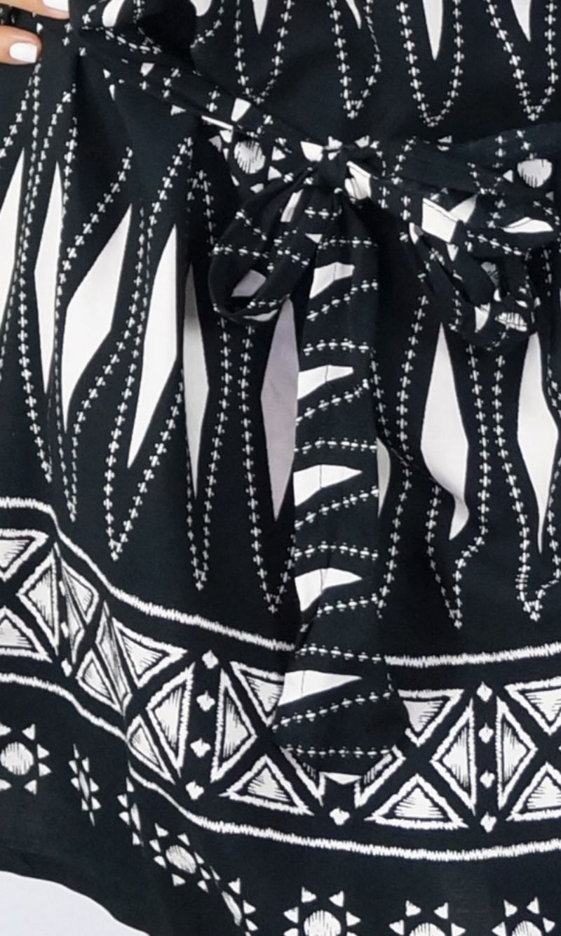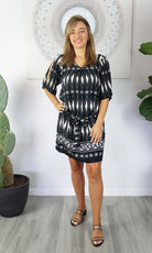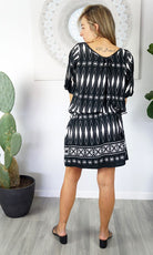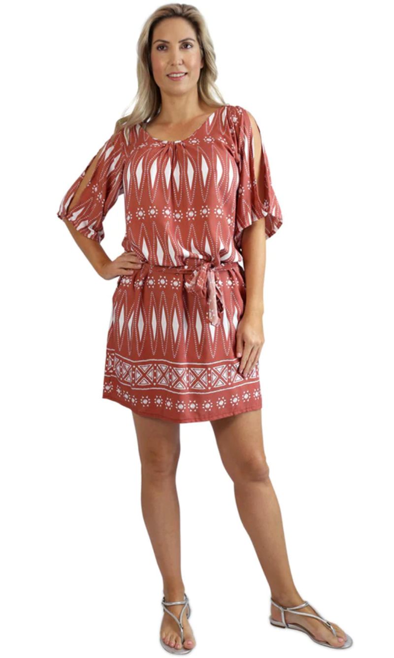 The Hayman Dress is a cool, calm, cold shoulder resort style garment. Made from soft rayon, and a matching fabric belt this can be worn as a dress or tunic over swimwear. Perfect addition to your summer collection!