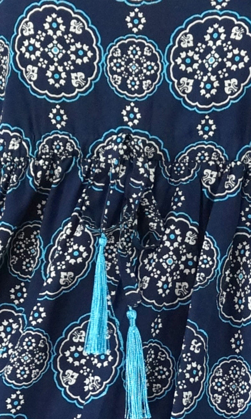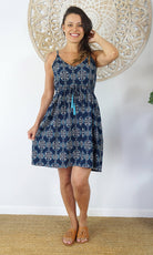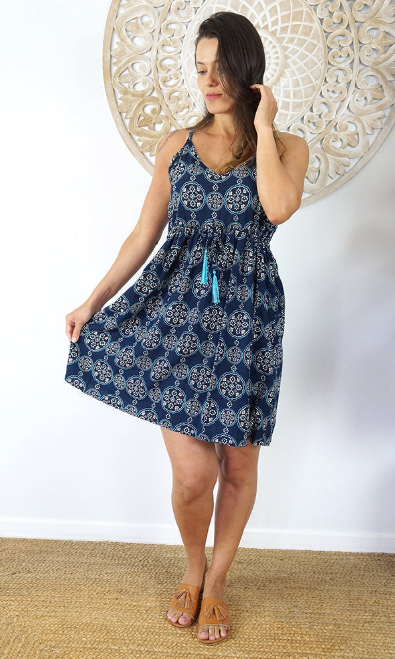 The Kalani Dress is an easy fitting sundress. The adjustable straps and the drawstring waist makes this dress flexible to fit your body. Pair with a pair of heels or a pair of sandals for a day in the sun.