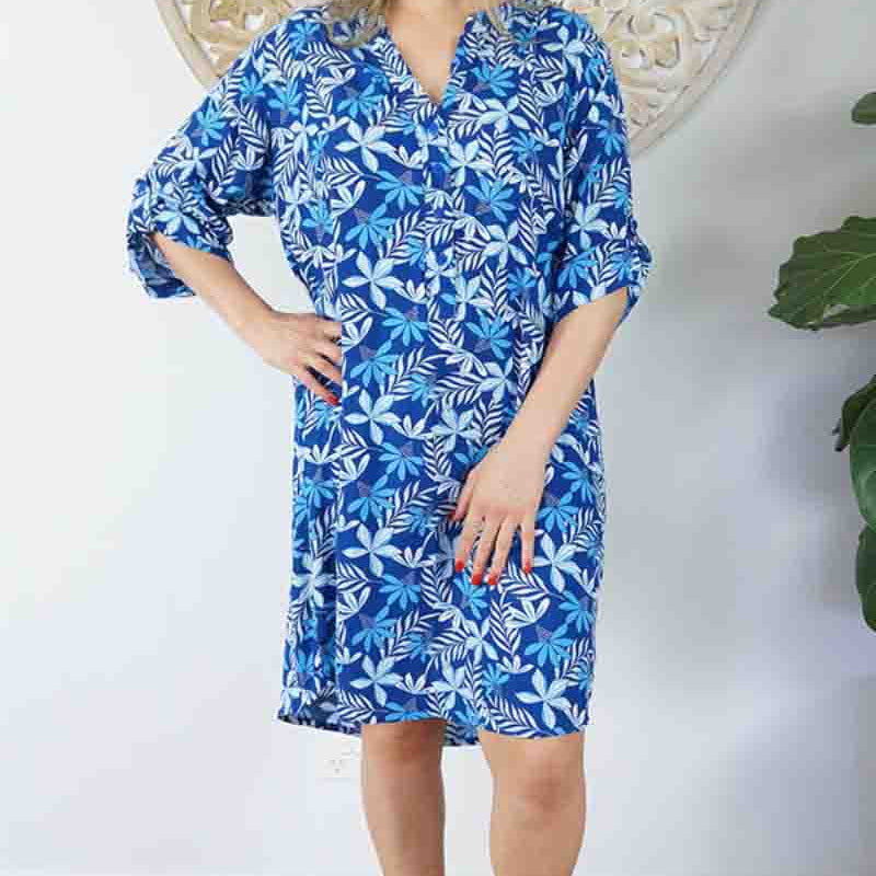 Made from 100% rayon, this will make a versatile casual dress or tunic for those hot summer days. Adjustable sleeve length and available in 2 sizes to fit, 8-12 & 14-18