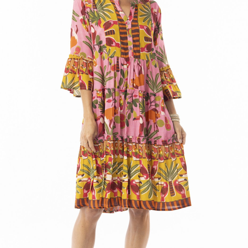 Rayon Dress Layers 3/4 Sleeve With Frill Chaira