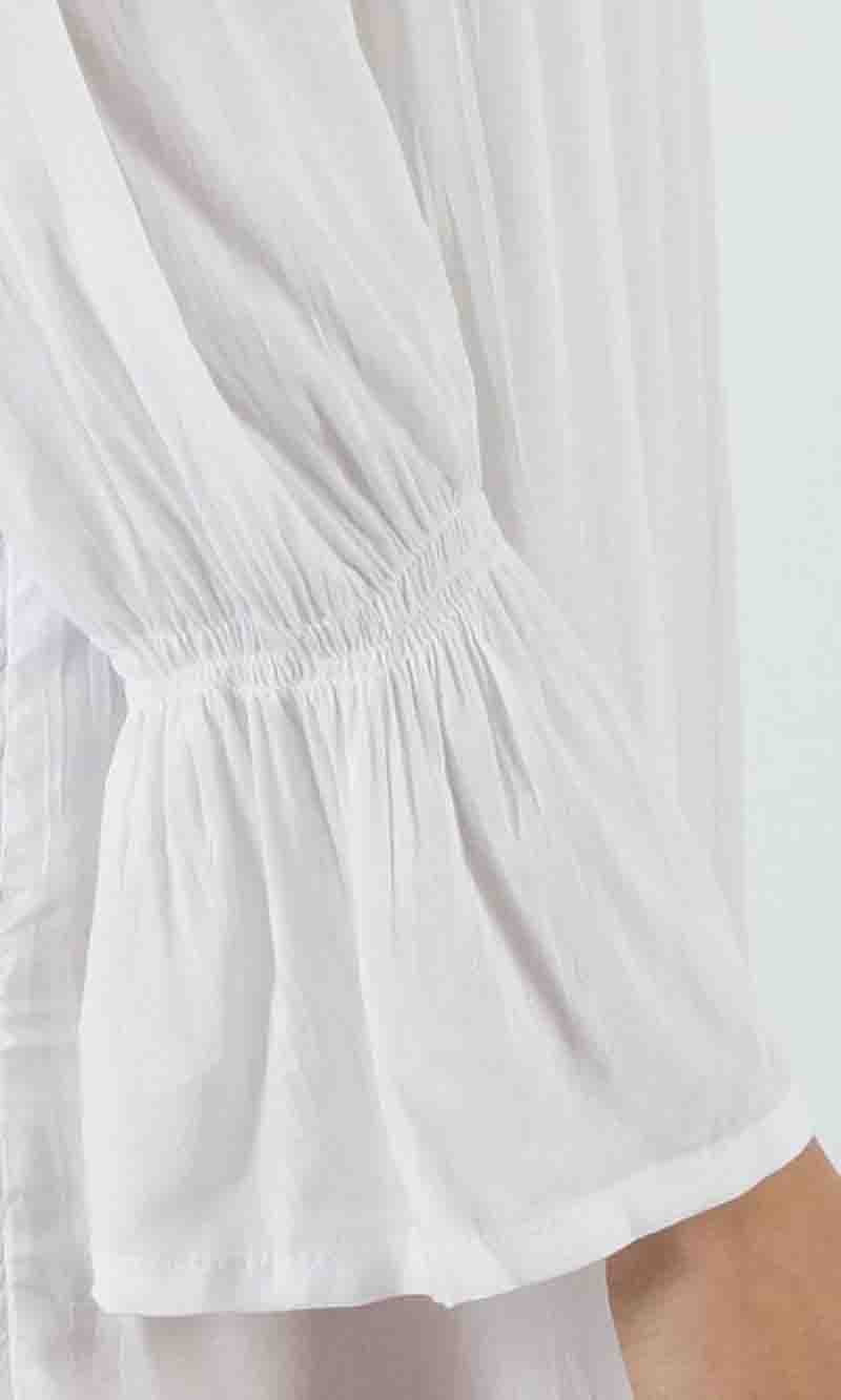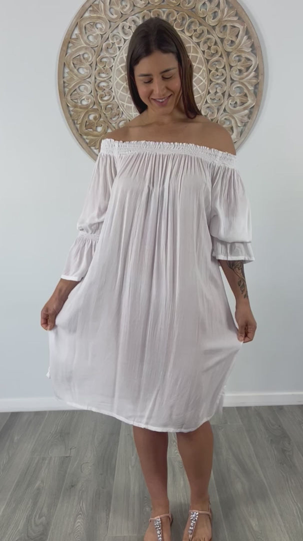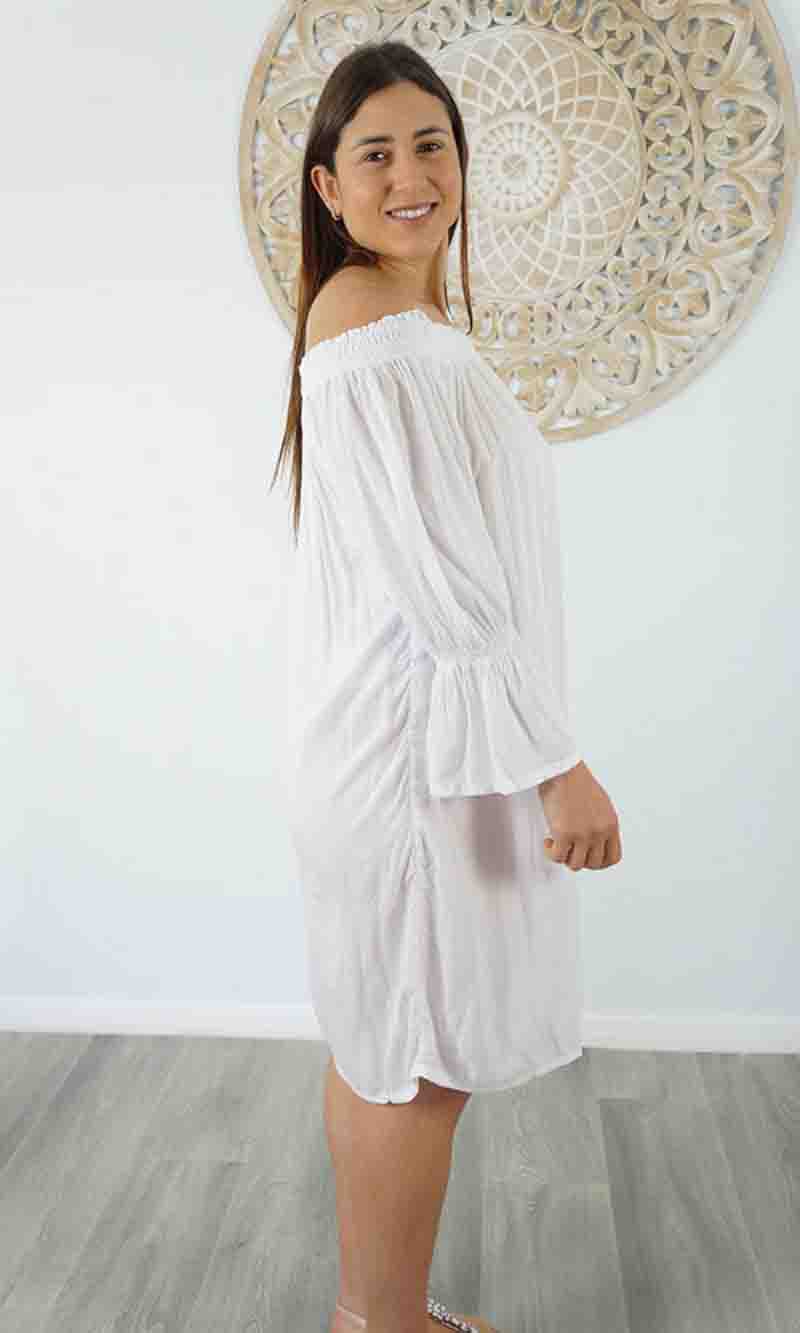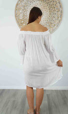 Made from a cool rayon with open sleeves and a matching fabric tie for around the waist this dress is perfect for summer.