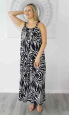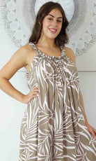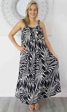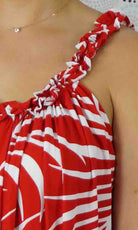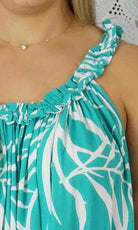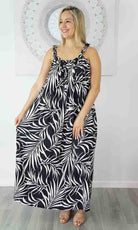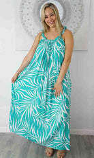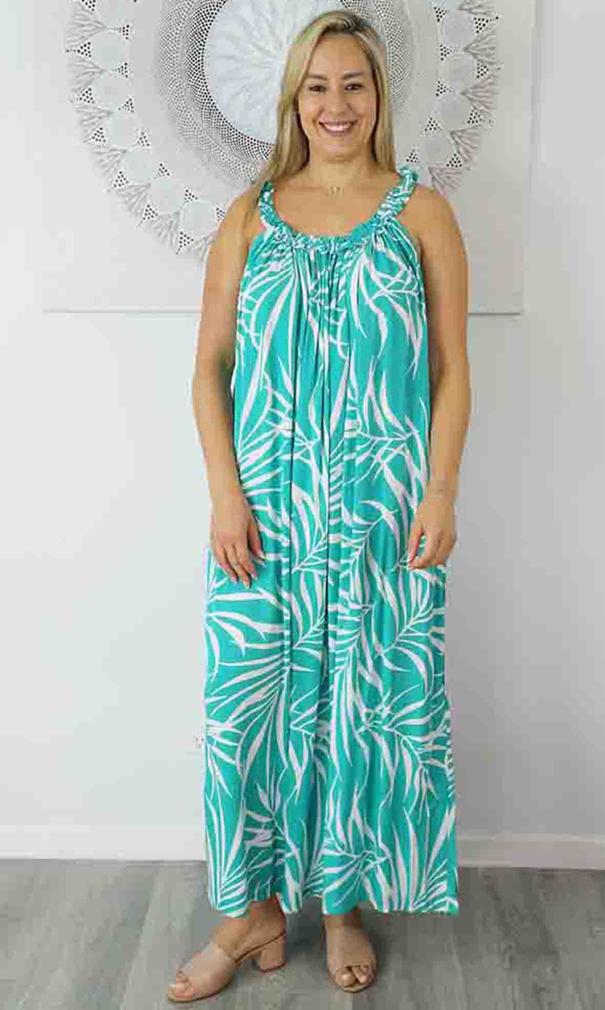 What a great dress for those warm summer days. Made from a cool printed rayon, with a stylish frilled neckline.