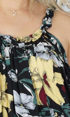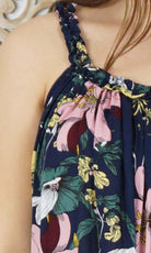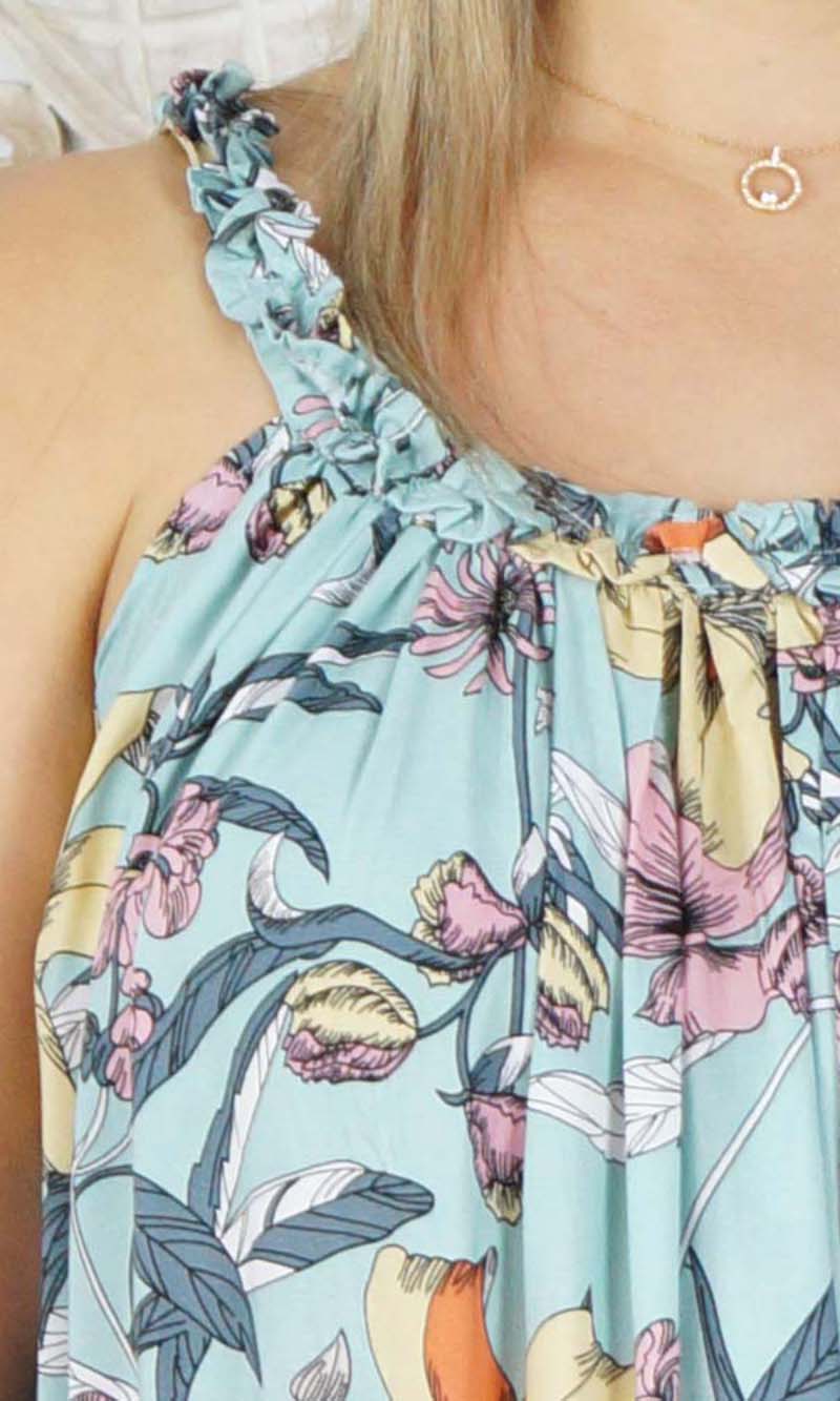 Made from a cool printed rayon, with a stylish frilled neckline.