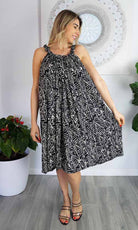 SIZE & FIT: Easy fit dress, one size fit sizes AUS 10 to 18. See size guide for International conversions.