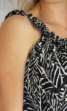 Made from a cool printed rayon, with a stylish frilled neckline.