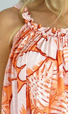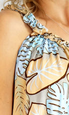 Made from a cool printed rayon, with a stylish frilled neckline.