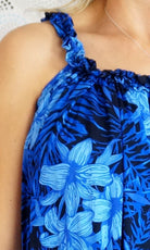 Made from a cool printed rayon, with a stylish frilled neckline.