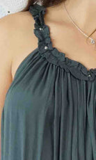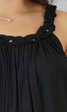 Made from a cool printed rayon, with a stylish frilled neckline.