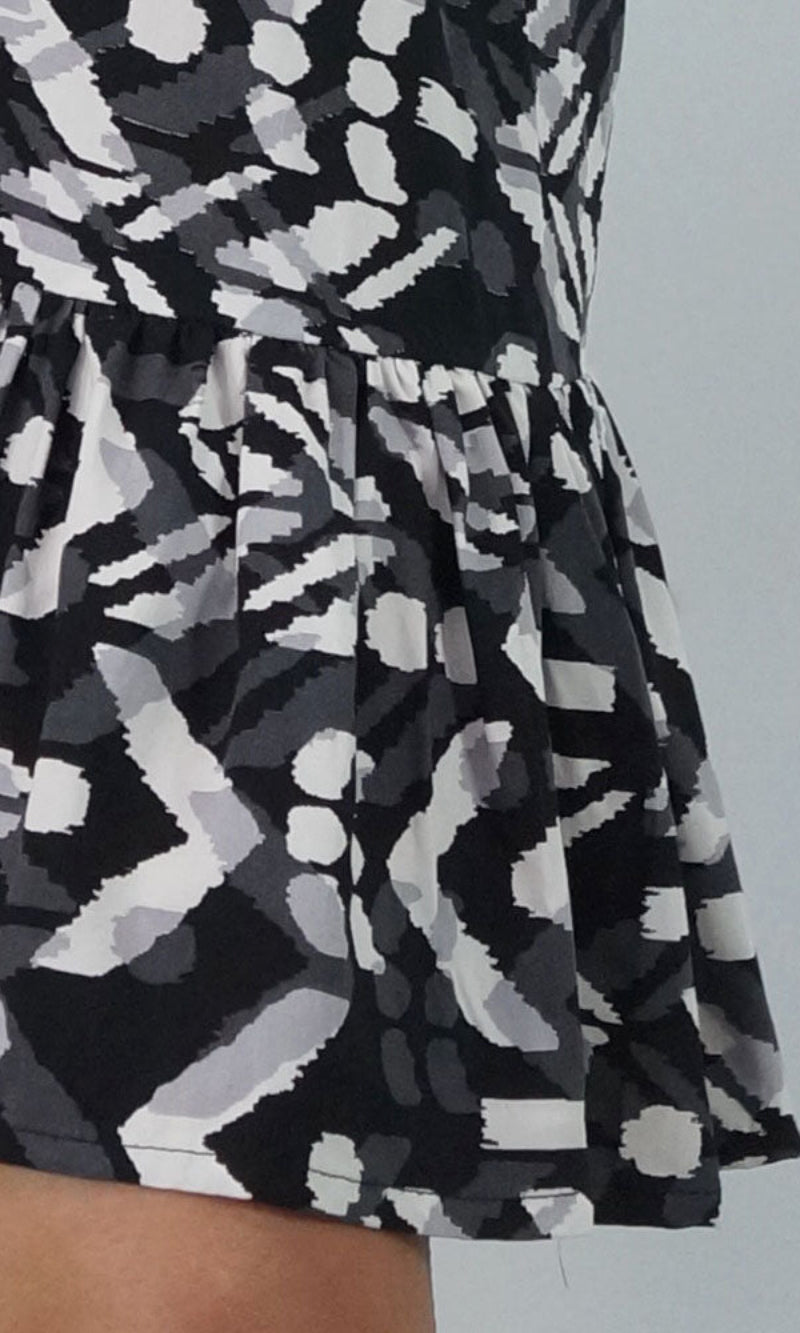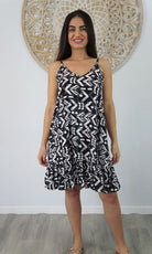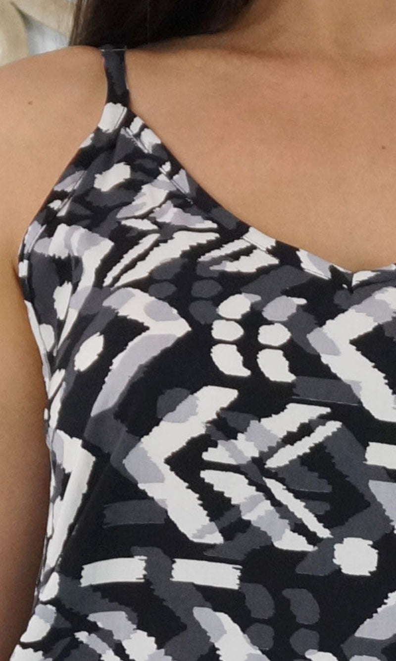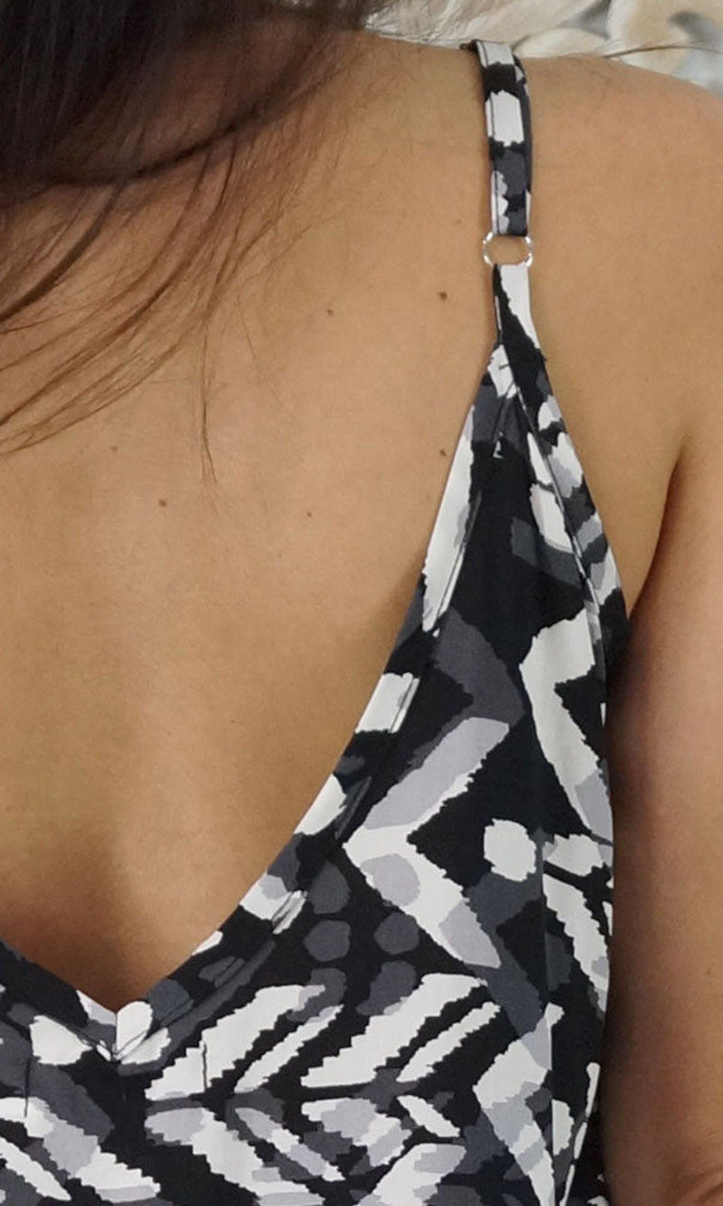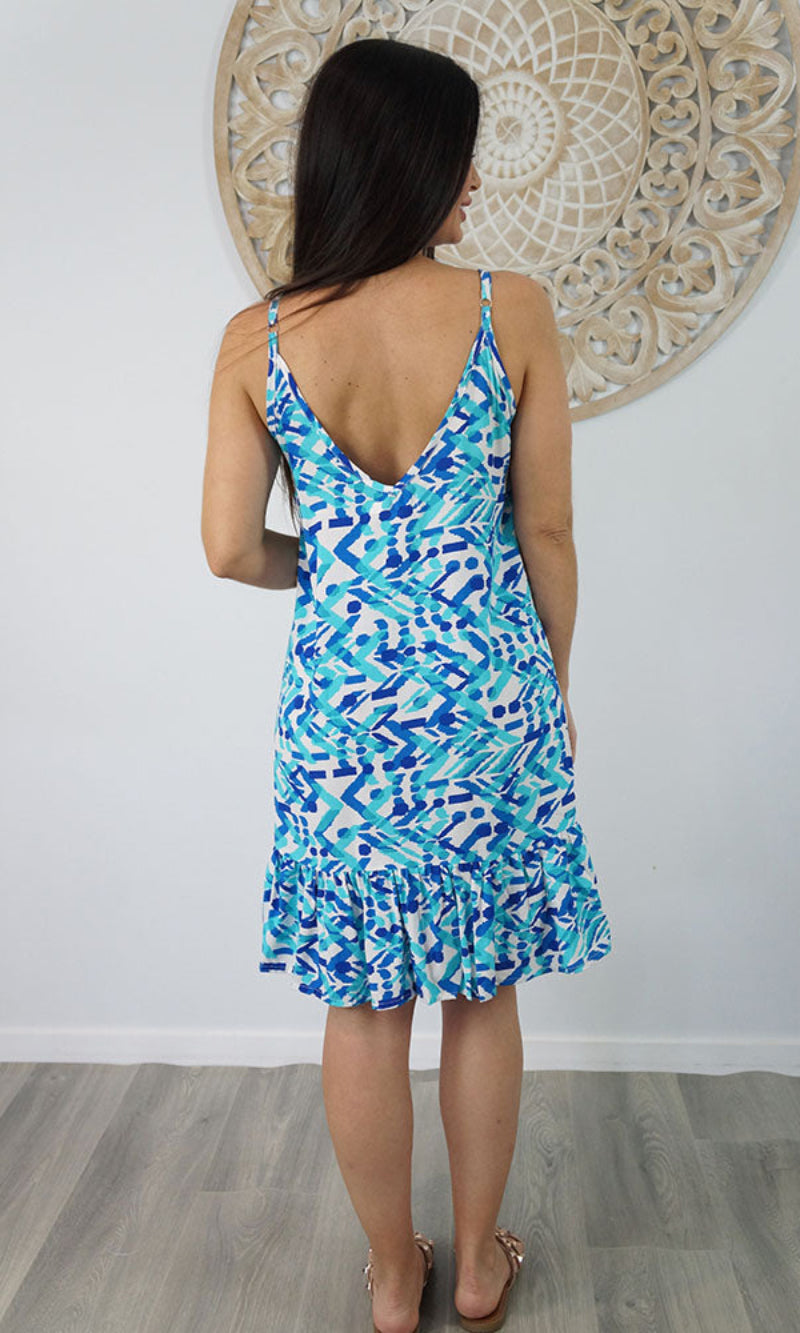 The Melody Dress offers a comfortable and flattering fit with its adjustable straps and elastic easement under the arms. Crafted from soft rayon, it features a stylish V-neckline front and back, complemented by a frill hem for graceful movement. This dress is designed to support your day with ease and elegance.