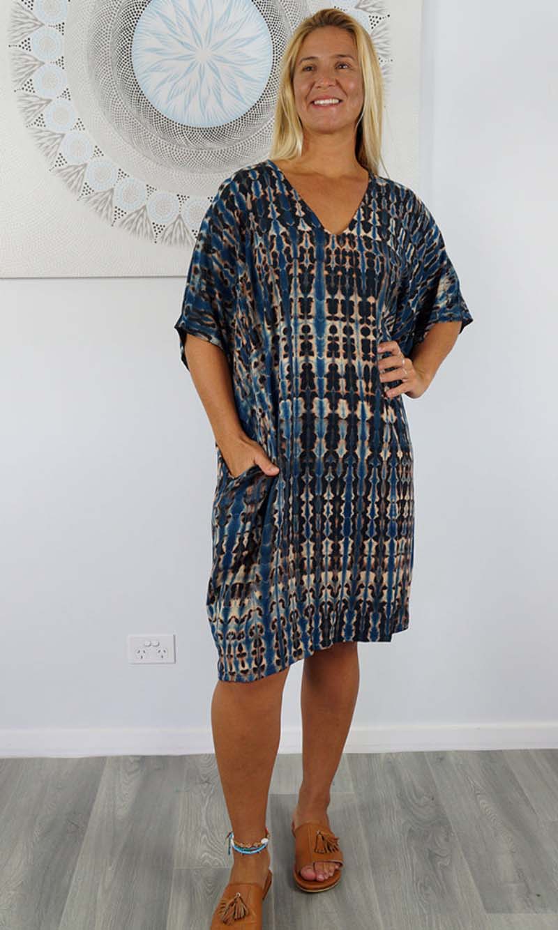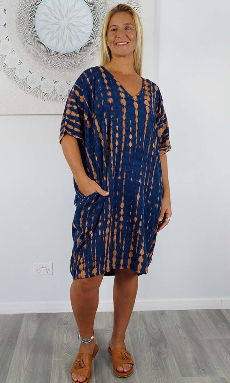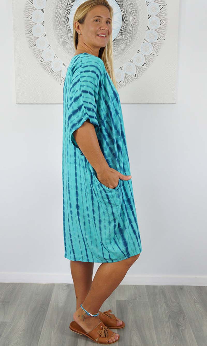 Rayon Dress Resort Crackle Tie Dye, More Colours