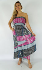 The Salsa Dress features a slight high hemline at the front and a longer hemline at the back with frill detail. Shirring around the bust, this dress is made all for comfort.
