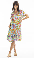 Rayon Dress Shift with Frill Hem Gabriella Blue