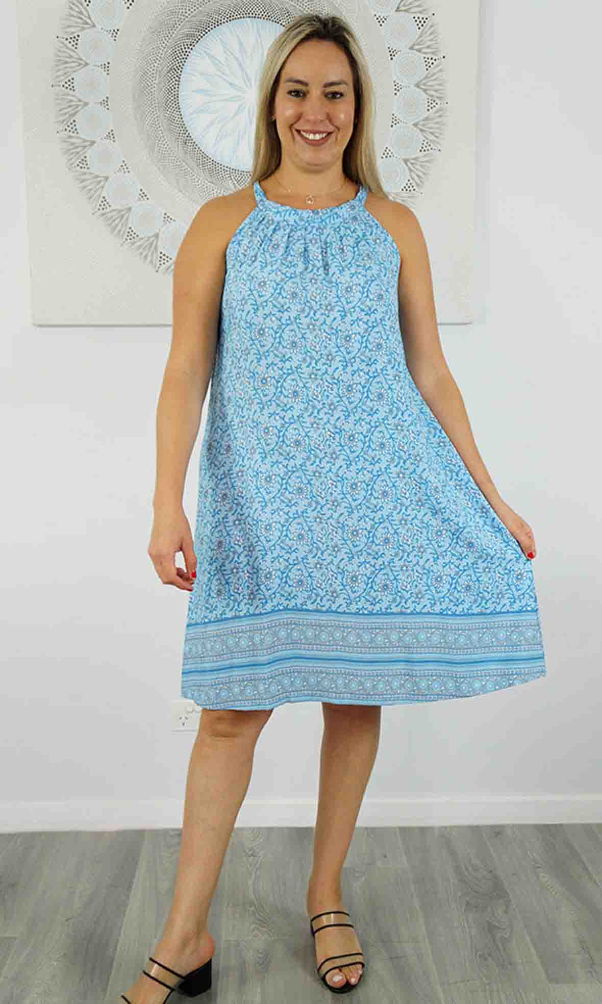 The Short Chloe is a fan favorite. The tasteful high neck line and the lightweight rayon material compliments every body shape. The Short Chloe is perfect for warm summer days.